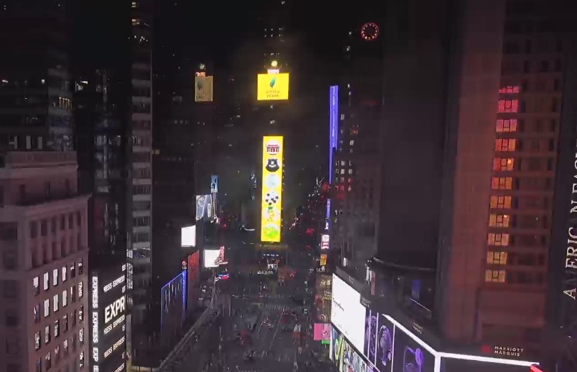 巨幅台北101大樓圖樣出現在紐約時代廣場。(www.earthcam.com)
