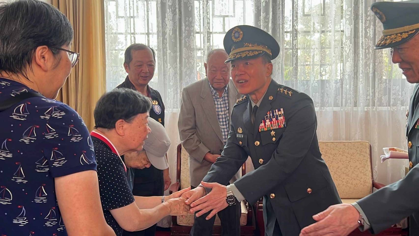 陸軍司令鐘樹明抵達國民革命忠烈祠山門慰問烈士遺族,並一一握手致意。(戴立文提供)