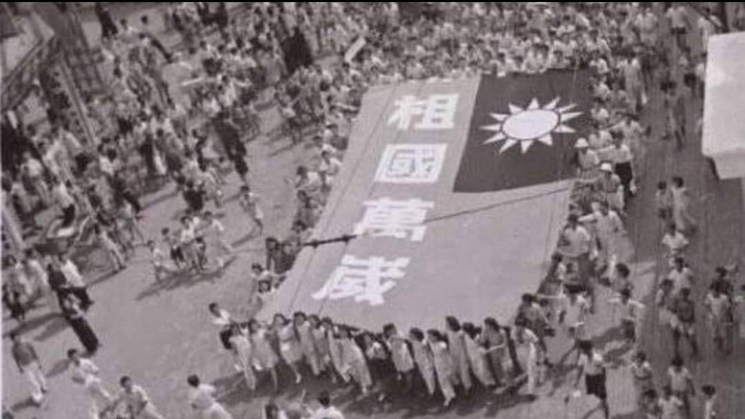 1945年,新加坡華人遊行,高舉「祖國萬歲」旗幟 ,慶祝抗戰勝利。(圖:作者提供 )