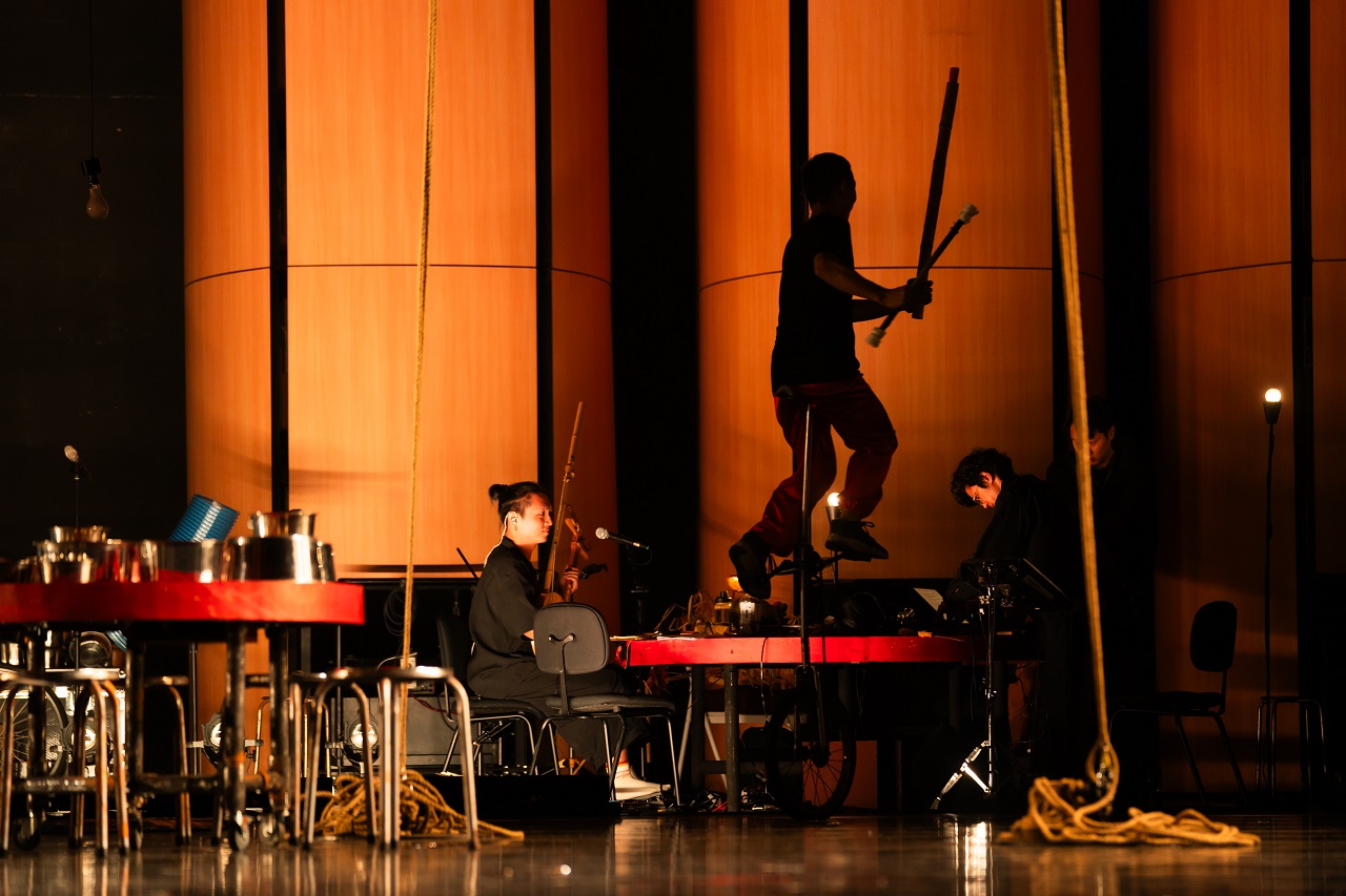 阮劇團《鬼地方》劇場版,現場的弄鐃、民間唸歌的音樂也為了整齣作品增色許多。(阮劇團提供)
