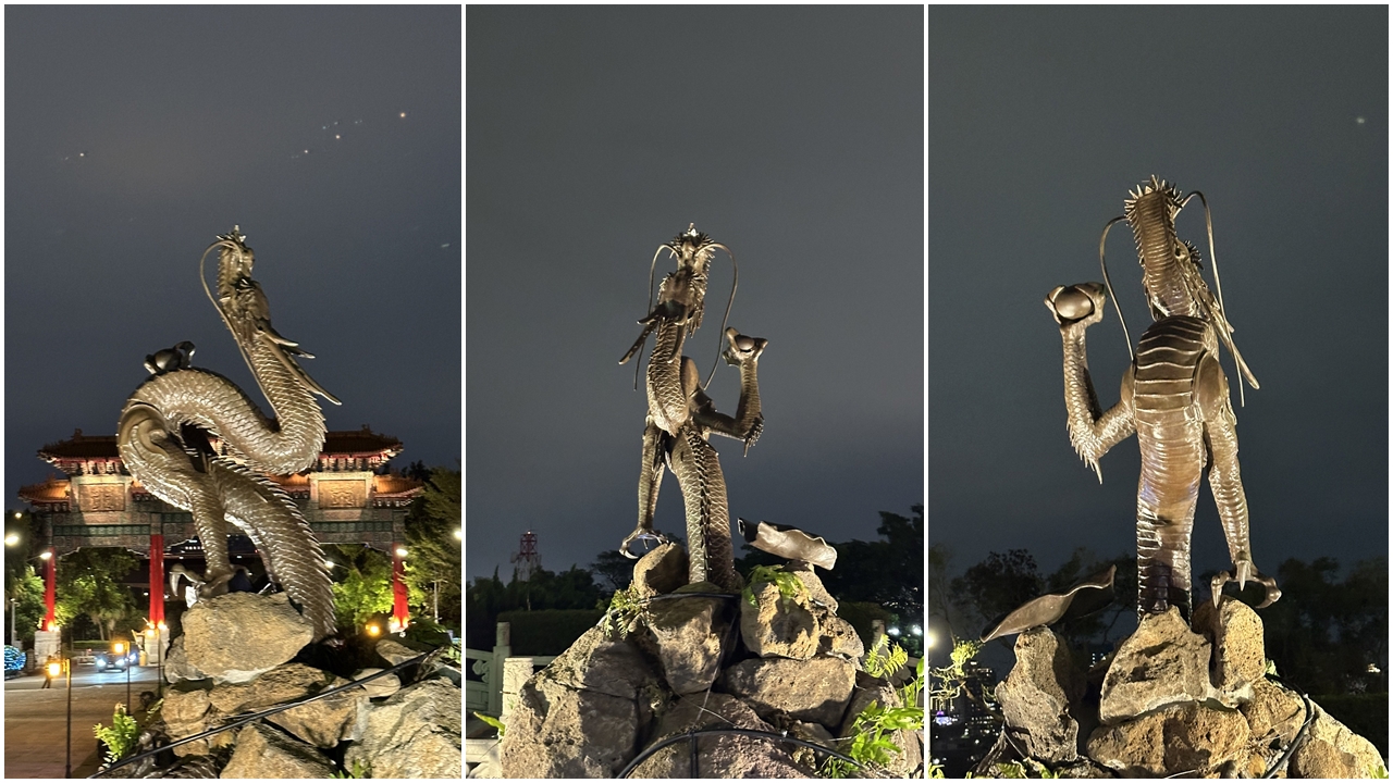 台灣神社百年神龍夜間樣貌。(蒲浩明雕塑工作室 攝)