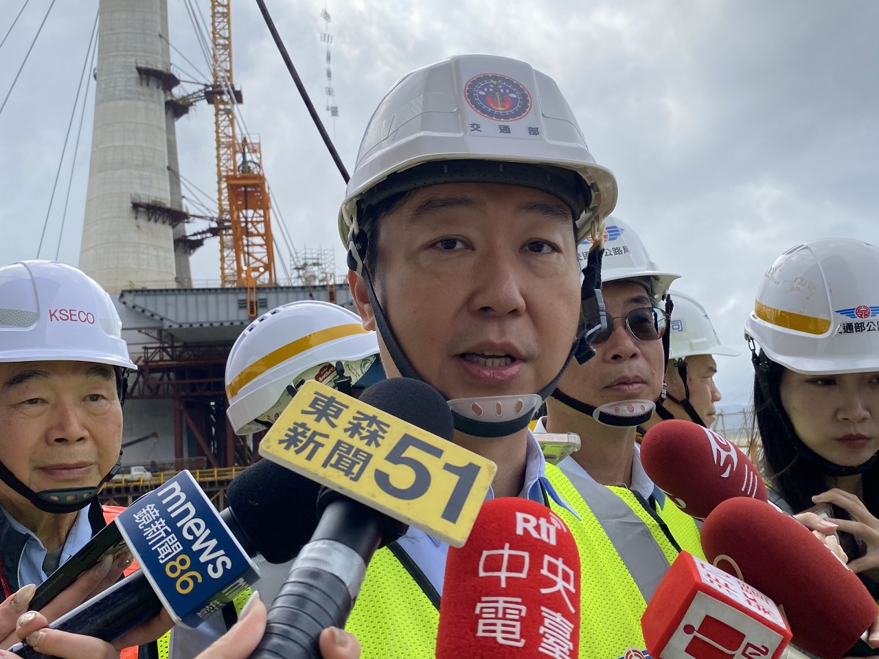 交通部長陳世凱上任後,首度於11日前往淡江大橋工地視察,並接受媒體聯訪。(吳琍君攝)