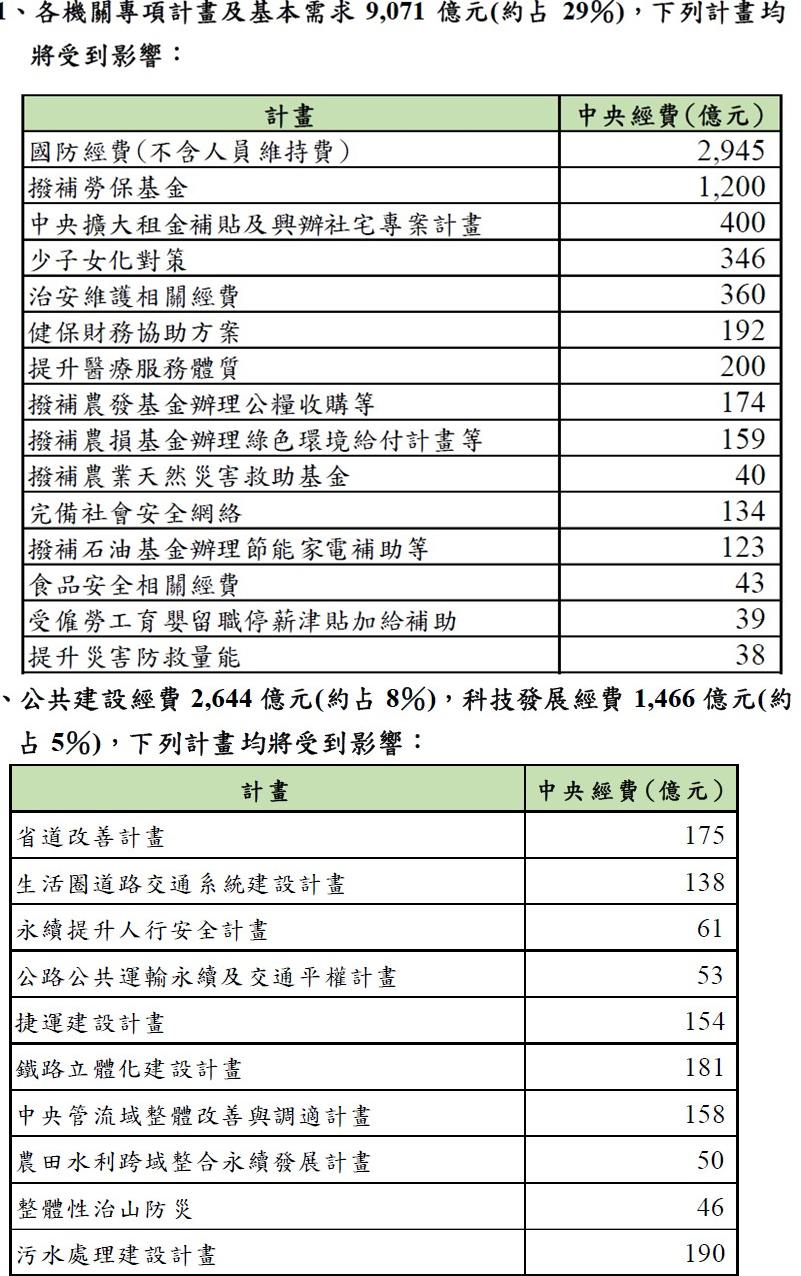 陳淑姿表示,上述支出須通盤檢討刪減28%,至於要刪減哪些項目、刪除多少,彼此會相互連動,主計總處還需要整體考慮。