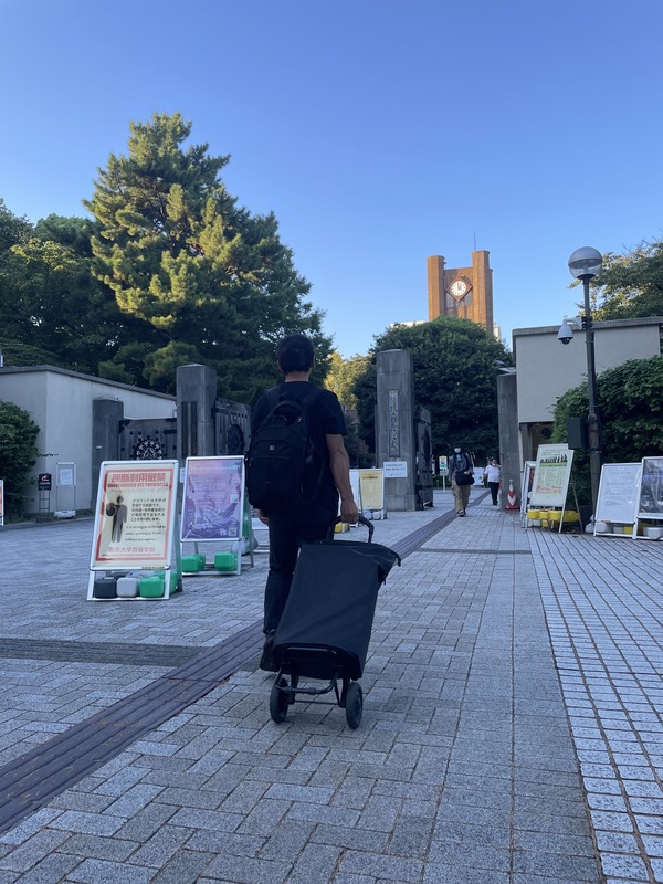 圖為2024年9月,張適之拉著自己在日出版的中文書前往東京大學,在林培瑞教授的中文演講活動現場賣書。(張適之提供) (圖:中央社)