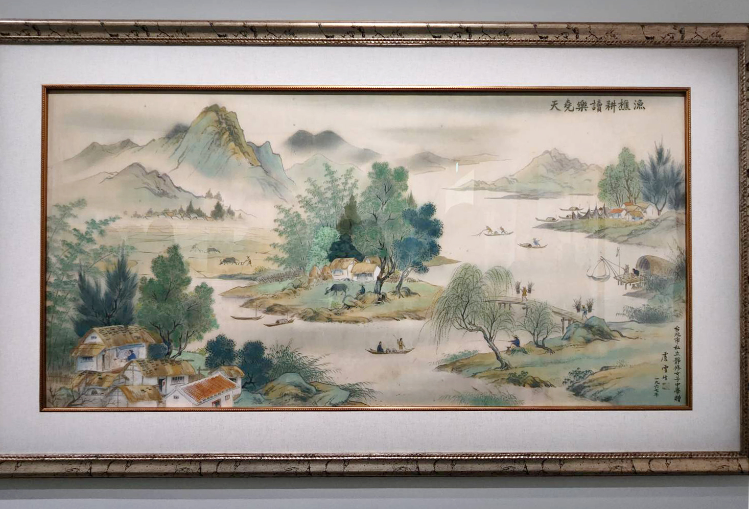 其中台灣前輩藝術家盧雲生1967年接受羅馬教會道明修女院委託所繪的《漁樵耕讀樂堯天》,首次在台公開展出。(江昭倫 攝)