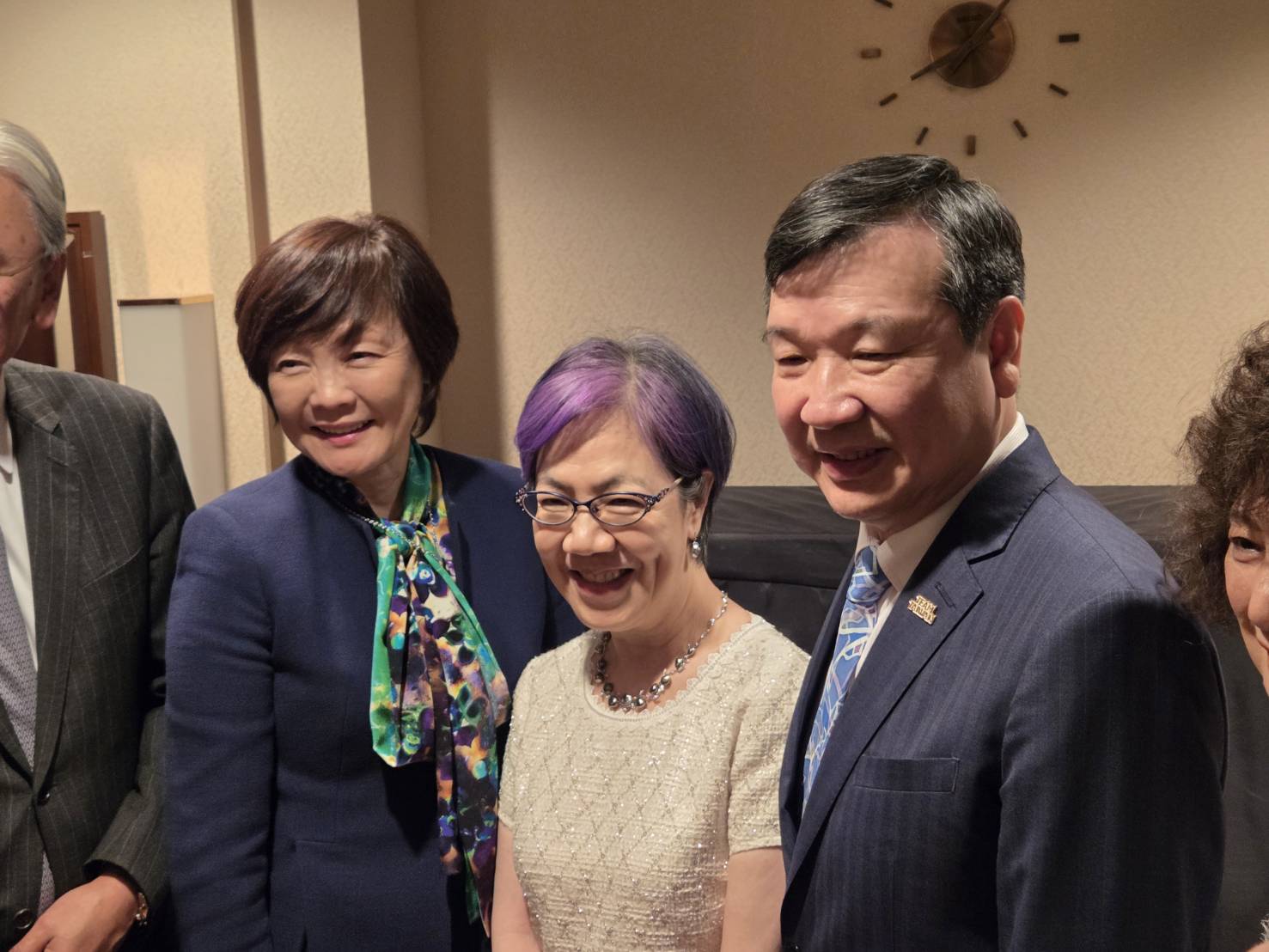 NSO 東京三得利音樂廳首演,日本前首相安倍晉三遺孀安倍昭惠(左起)、李登輝基金會董事長李安妮、台灣駐日代表李逸洋都來了。(江昭倫 攝)