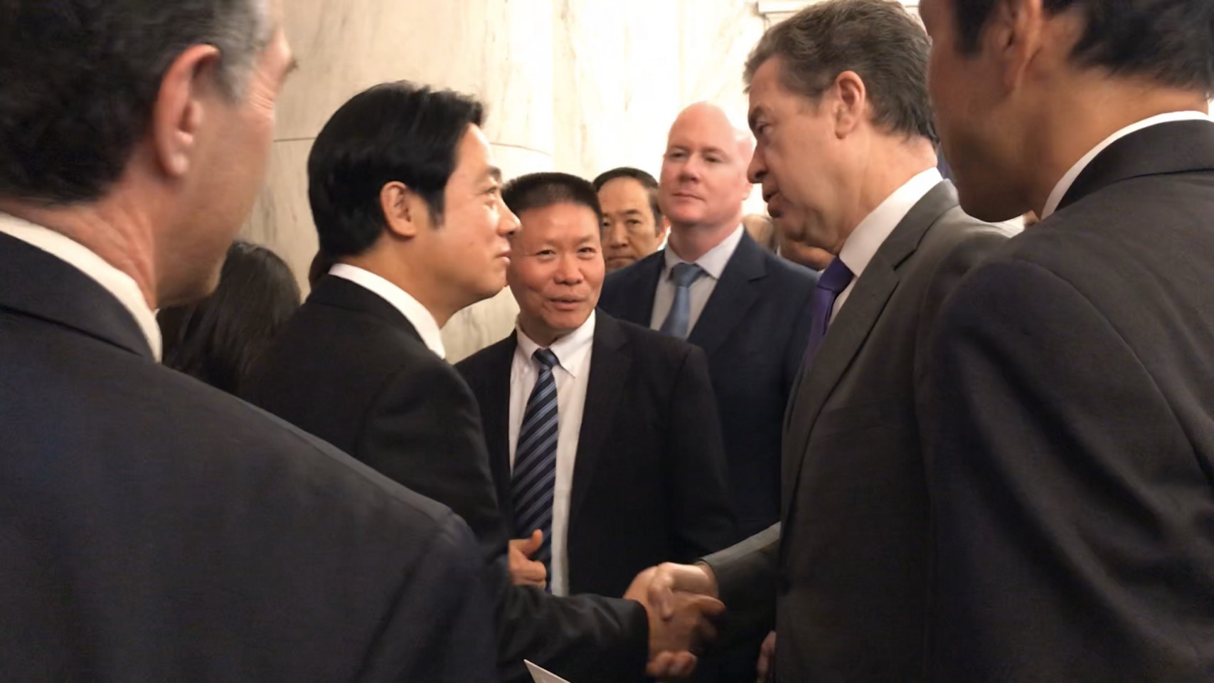 美國宗教自由大使布朗貝克與準副總統賴清德握手致意