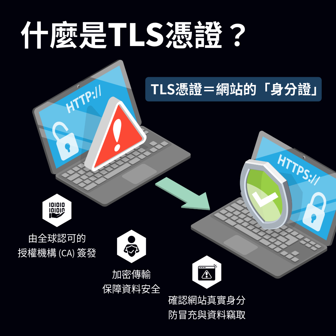 有了憑證之後,就可證明某個網站、伺服器或設備的真實身分,確保你正在與正確的對象溝通,而非冒充者;同時也可加密資料,防止在傳輸過程中被竊取或竄改,確保資料的安全。