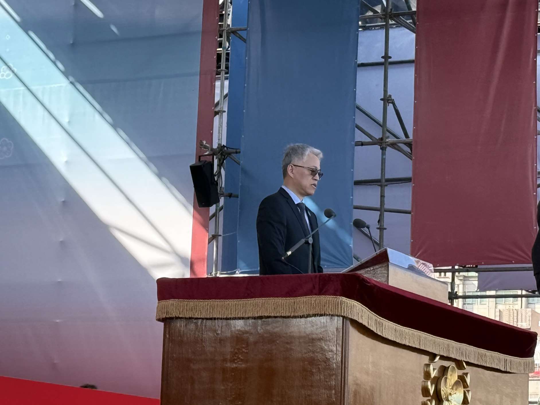 國慶籌備委員會祕書長、內政部常務次長吳堂安致詞表示,今年國慶大會以「中華民國生日快樂」為主題,表達對國家的深厚感情,希望大家共同為中華民國喝采,繼續為台灣的未來努力。他說:『(原音)我們共同生活在這片美麗的土地上,攜手走過無數艱難與挑戰,正是因我們懷抱著相同信念與目標才能讓全國上下團結一致,在風雨中屹立不搖。最後我想向所有參與國慶籌備會的夥伴們及表演團體致上最誠摯的感謝,正因為你們的辛勞才能讓這場慶典如此精彩,也感謝在場每一位國人同胞的支持與鼓勵,讓我們一起為中華民國喝采、並繼續為台灣的未來努力。』