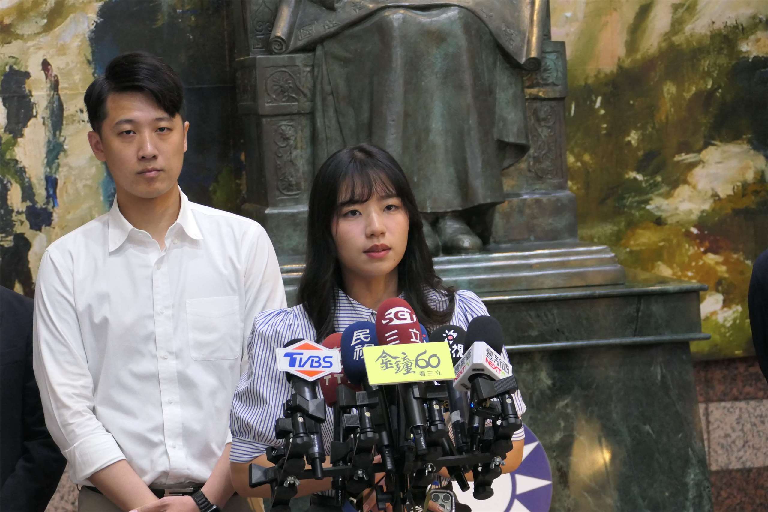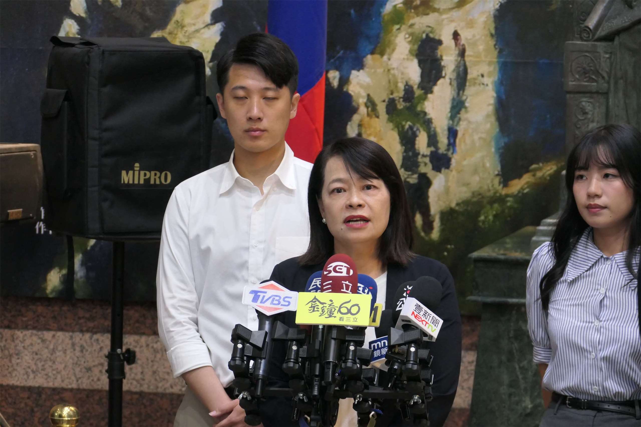 傳出國民黨主席選舉有境外勢力介選,國民黨發言人楊智伃(右)今天(15日)在中常會後受訪表示,國民黨絕對嚴正譴責任何境外勢力介入台灣任何選舉,黨中央秉持公平、公正的立場辦理黨主席選舉。(趙婉淳 攝)