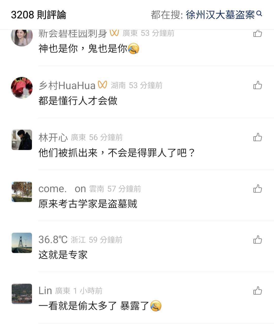 微信萬花筒 神州蒼生的日常、思考與生活 最近,徐州漢代王陵墓被盜案宣告偵破,但結果震撼輿論。嫌疑人就是官方考古專家,白天考古,晚上盜墓。警方目前已拘捕30人。 中國網民得知後大為感慨,表示這可以用「神也是你,鬼也是你」形容。也有人認為這顯現出持證上崗的重要性,考取專技資格很重要,還有人認為這和白天當學校老師、晚上當補習家教很相似。 總之,似乎不太有人譴責他們的盜墓行為。