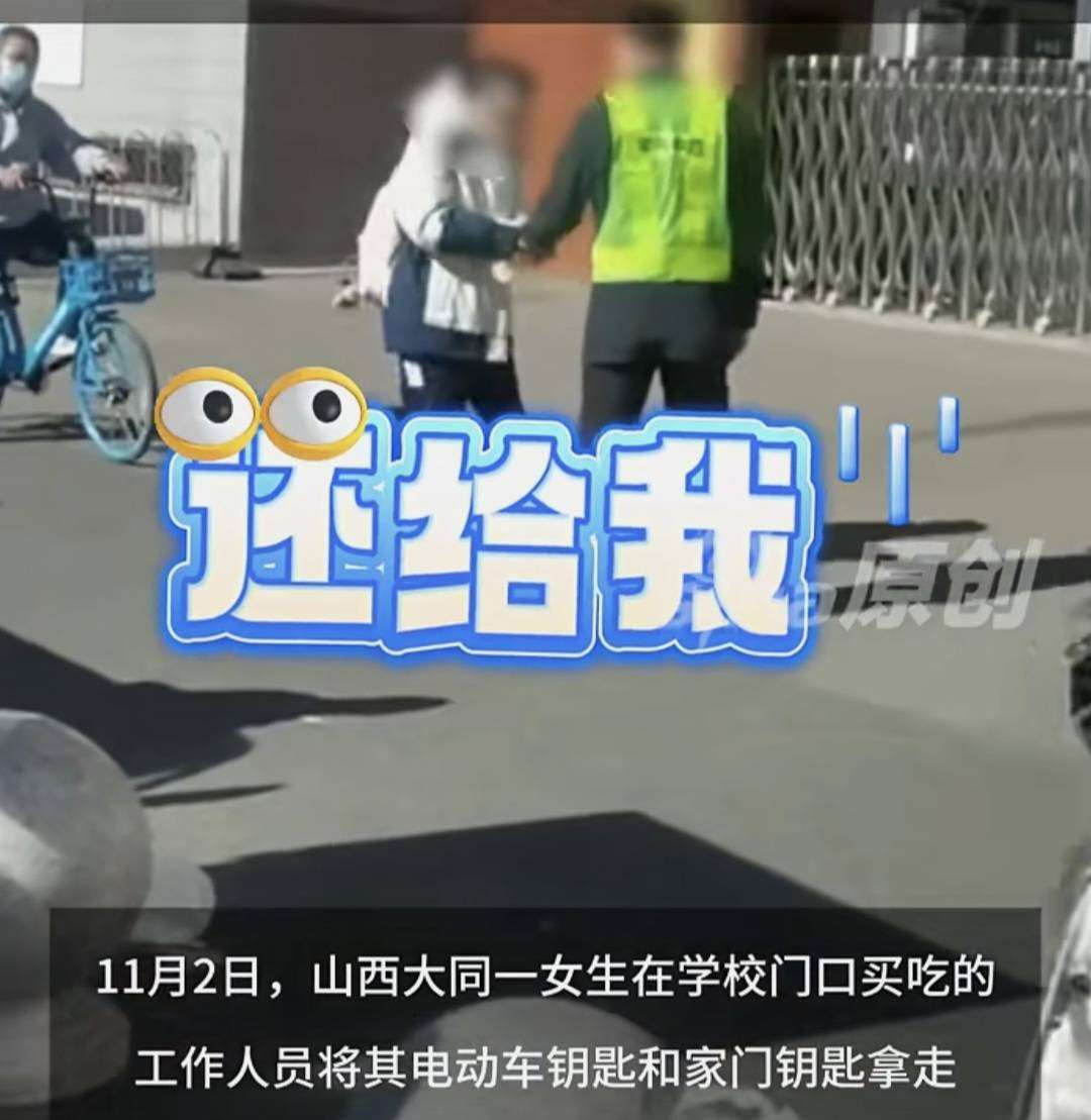 本月初,山西省大同市第四中學門口的「烤腸風波」燃遍全網。一名女學生在校門外的攤位購買烤腸,遭到當值副校長上前制止,並強行拔下該學生的電動車鑰匙。這一串鑰匙中,甚至包含女生家門的鑰匙。女生當場哭喊「還給我」、追逐要回鑰匙,但副校長卻輕佻冷回「看我給不給你」。事件經過被圍觀者拍下傳放上網,瞬間激怒全中國輿論。