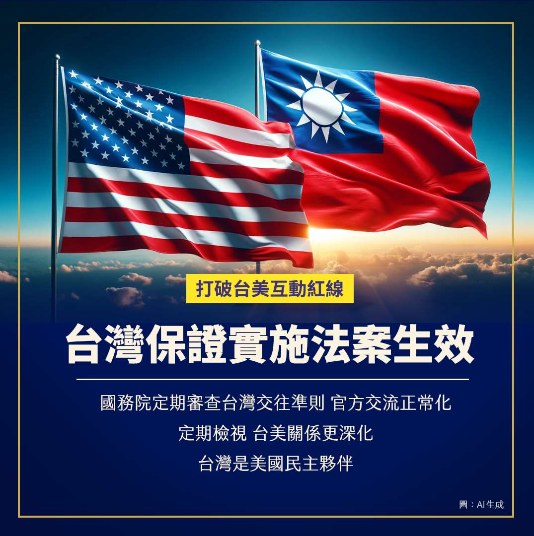 美國總統川普(Donald Trump)2日簽署「台灣保證實施法案」(Taiwan Assurance Implementation Act),這項法案規定美國國務院重新審視台美往來準則,旨在打破台美交往互動的「紅線」。「台灣保證實施法案」將台灣視為民主夥伴,台美關係交流將趨於正常化。帶您了解「台灣保證實施法案」的重點。