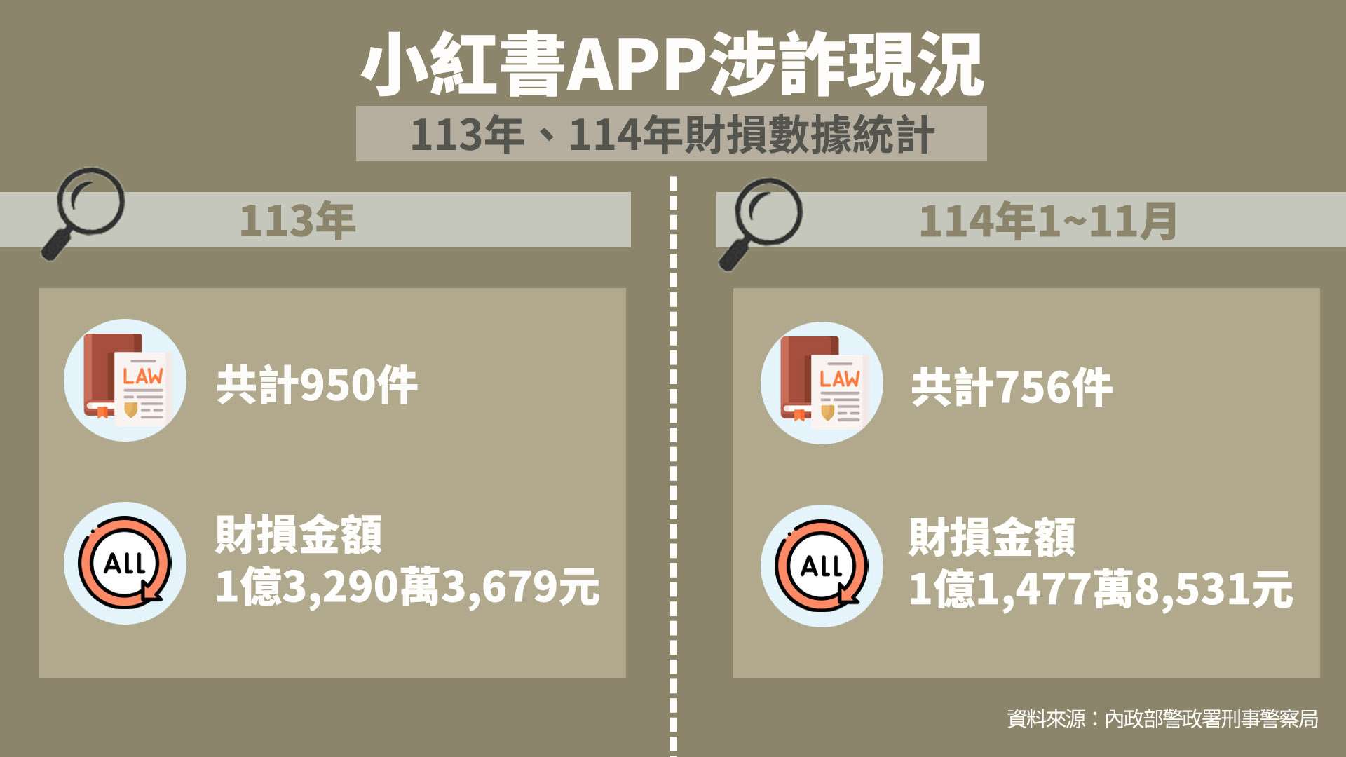 內政部並說明,本次對小紅書停止解析、限制接取並非首例,今年1月至11月各部會依《詐欺犯罪危害防制條例》通報涉詐網站停止解析累計有4萬5,094組。
