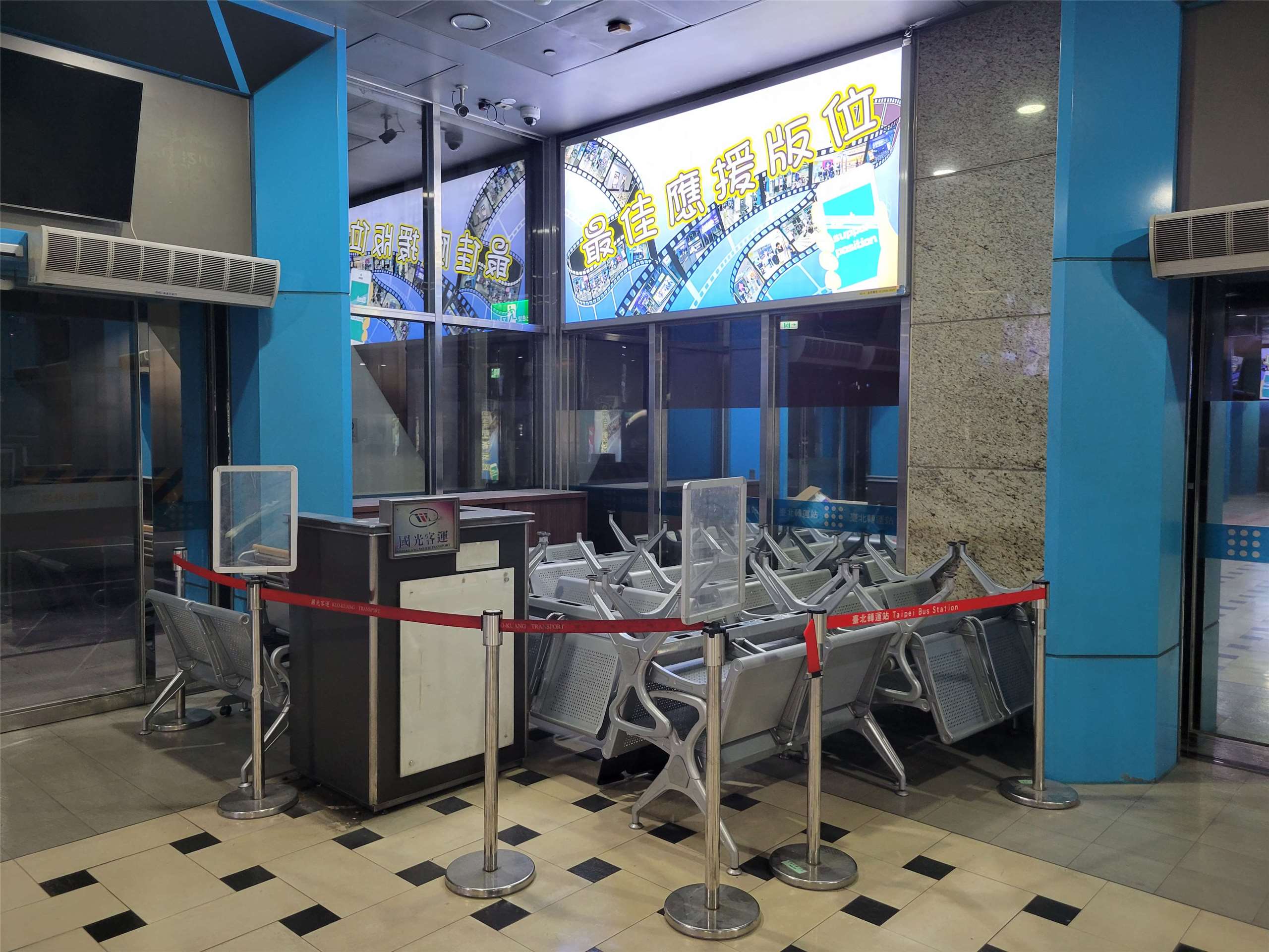 台北轉運站二樓因無人承租,候車座椅被收起、廣告版位未售出。(饒辰書 攝)