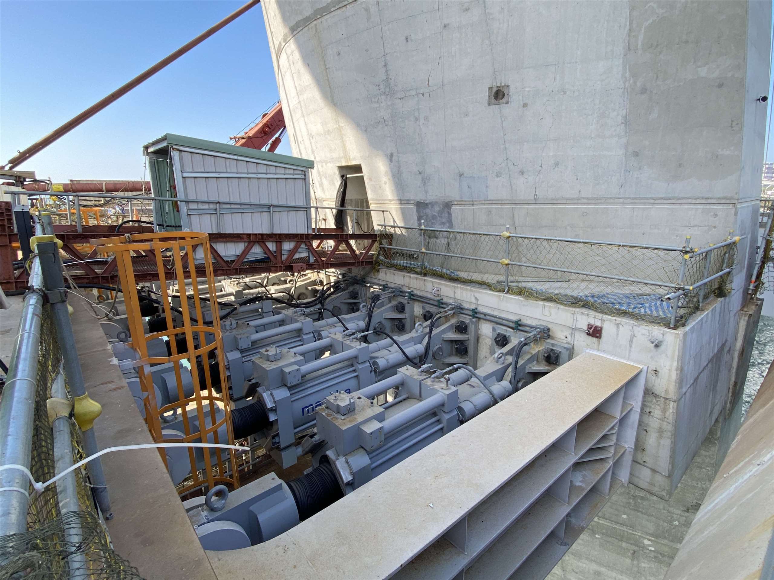 主橋塔下方設置了7支液壓式阻尼器HFR,可抵銷7級的地震。 (吳琍君攝)