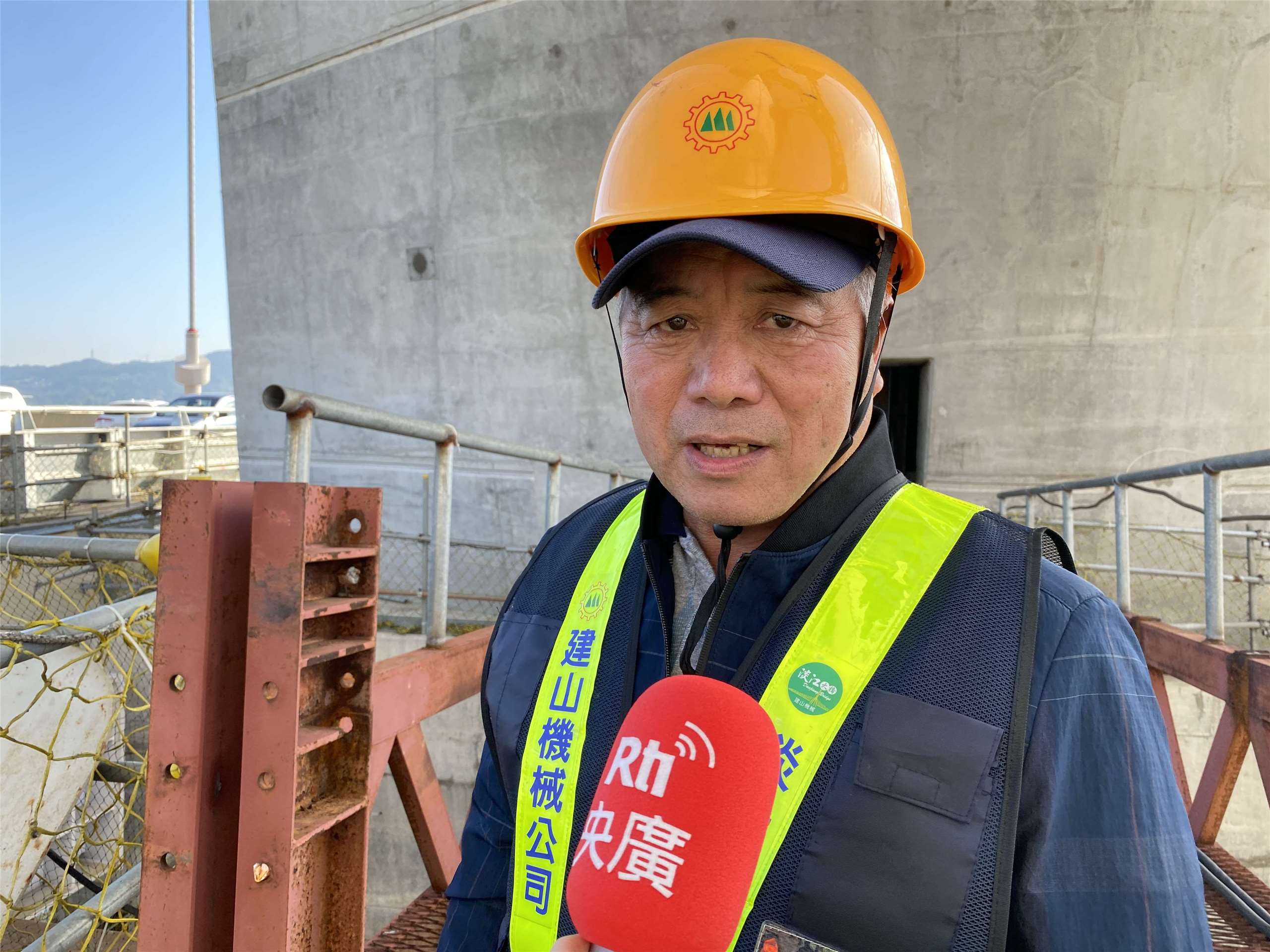 同時參與金門大橋與淡江大橋的宇球公司塔吊司機盧聖文受訪說明在這兩座大橋進行塔吊作業的不同處。 (吳琍君攝)