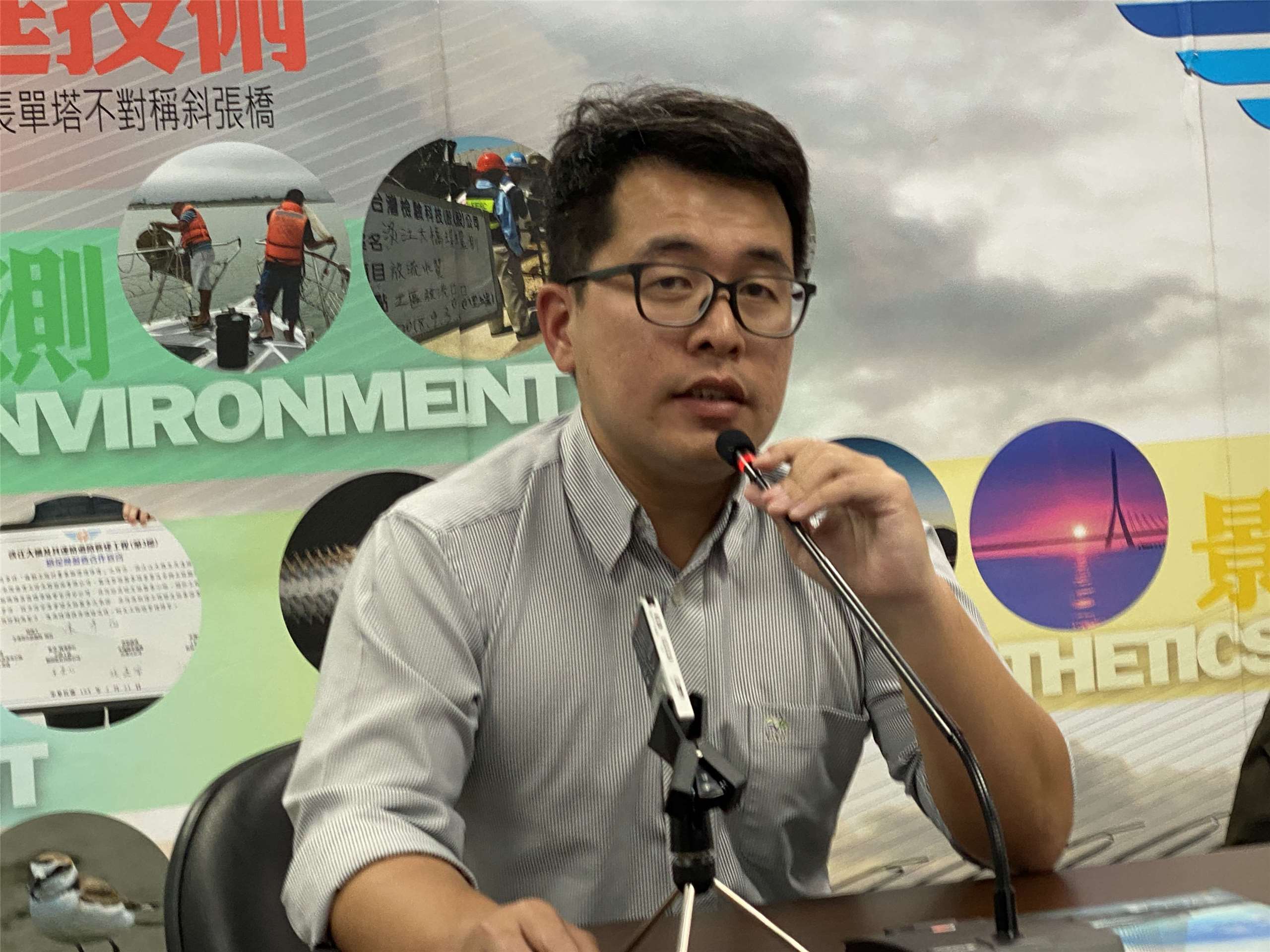 淡江大橋負責打造、安裝、焊接整座橋的鋼箱、鋼構、節塊與機械、甚至景觀燈柱的建山機械企業總經理張慶宗受訪時坦言,自己是從一個大家都不看好的小建商,努力投入、用心研發,終於讓外界看到他們「足堪重任」。 (吳琍君攝)