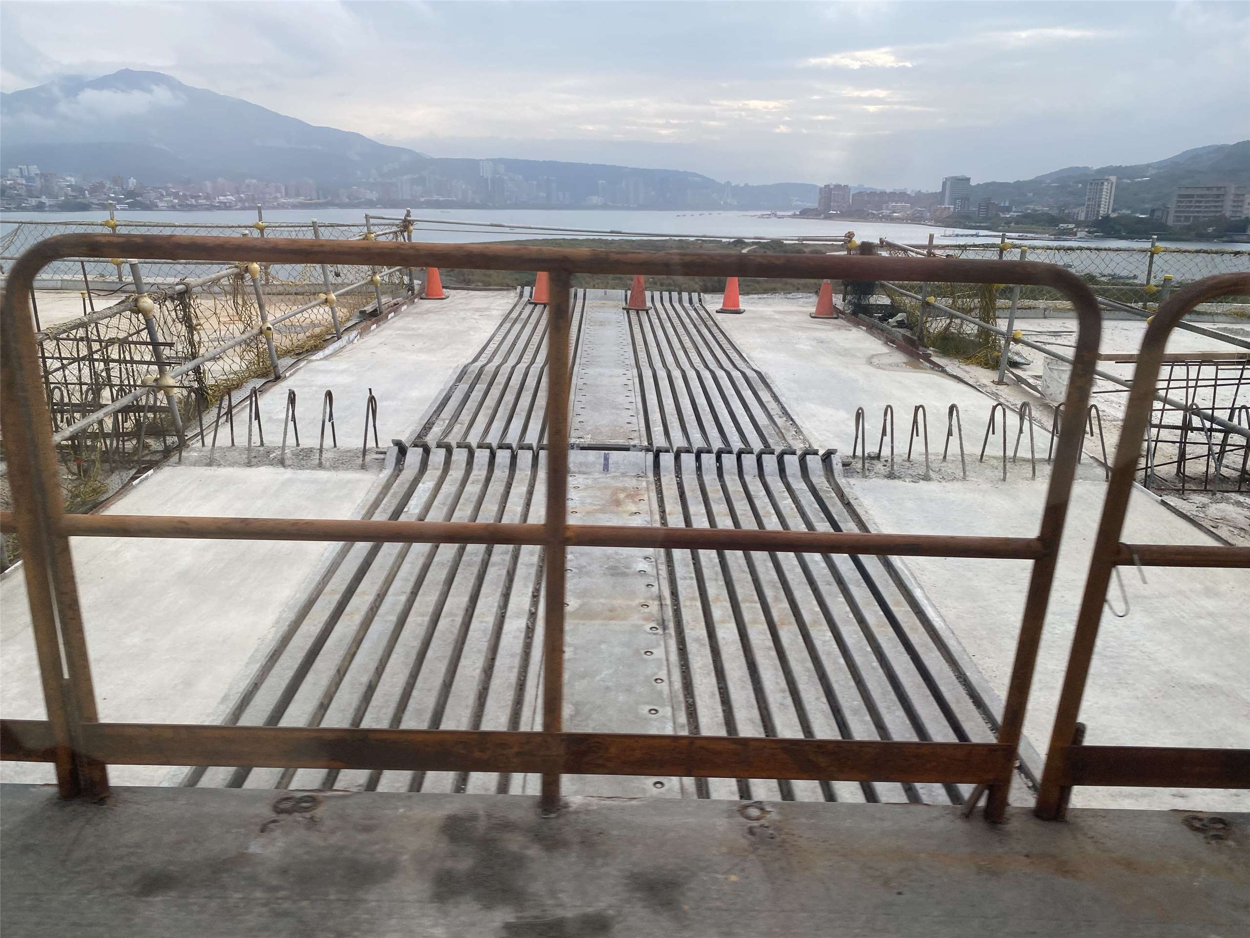 淡江大橋端有個台灣最大的伸縮縫,長達5.5公尺,耐受的伸縮空間高達90公分,比其他橋梁多出3、4倍! (吳琍君攝)