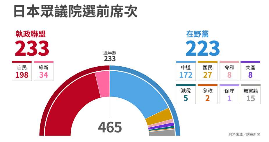 另一方面,國民民主黨提出「51席、比例票900萬」的選舉目標。一旦取得51席,該黨將可單獨提出內閣不信任案與附帶預算的法案,政治影響力將大幅提升。(編輯:陳文蔚)