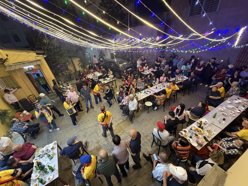 印度加爾各答華人慶祝新年,用「辦桌」的形式宴請親友,讓許久不見眾人重新團聚在一起。(圖:中央社)