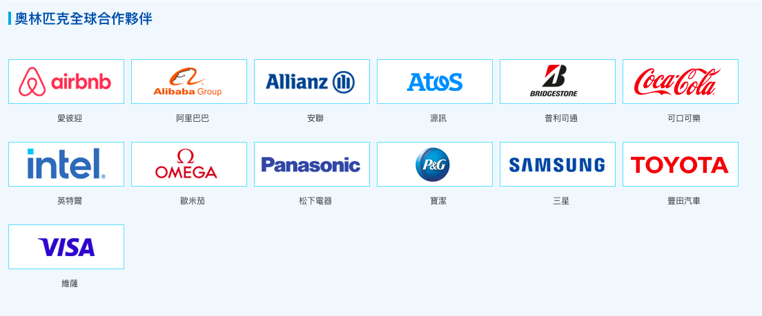 2022北京冬季奧運的全球合作夥伴(贊助商)。圖:北京冬奧官網