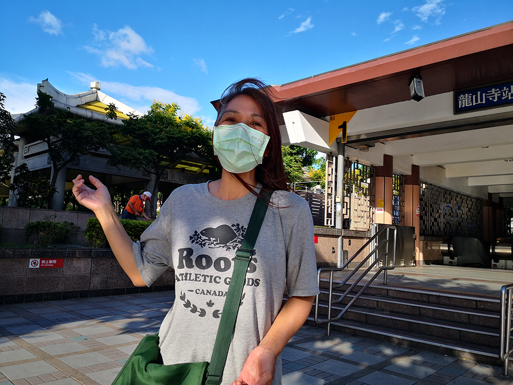 她是碗粿,今年五十七歲,一頭茂密的長髮, 在龍山寺捷運站前,頂著不斷吹拂而過的和煦暖風,正說著幾個月站在這裡,當導引員的工作狀況。