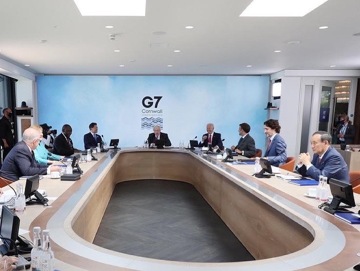 2021年6月間在英國召開的G7峰會。(圖:日本首相官邸推特)