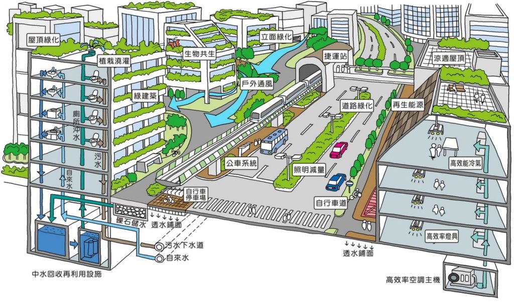Gayunpaman, upang palamig ang kapaligiran, hindi sapat ang mga gusaling nagtitipid at nagpapalamig ng enerhiya lamang. Dapat tayong magsimula sa disenyo ng buong lungsod. Noong unang bahagi ng Hulyo ngayong taon (2023), tiyak na naramdaman ng mga tao sa Taipei ang mataas na temperatura lalo na nang husto, dahil ang temperatura ng katawan ay tumaas nang higit sa 40 degrees Celsius, kaya mas mainit ito kaysa sa ibang bahagi ng Taiwan. Bagama't matatagpuan ang Taipei sa mas mataas na latitude, mas mainit ang temperatura kaysa sa ibang bahagi ng Taiwan. Ito ay tiyak dahil apektado ito ng "heat island effect" na karaniwan sa mga urban na lugar. Ang epekto ng isla ng init ay tumutukoy sa katotohanan na ang mga temperatura sa lungsod ay mas mataas kaysa sa mga suburban na lugar dahil sa mga makakapal na gusali, kakaunting berdeng espasyo, at pagtaas ng gawa ng tao na basurang init mula sa air-conditioning at transportasyon. Kung ang problema ng heat island effect ay malulutas, ang kasalukuyang urban planning ay dapat repormahin.