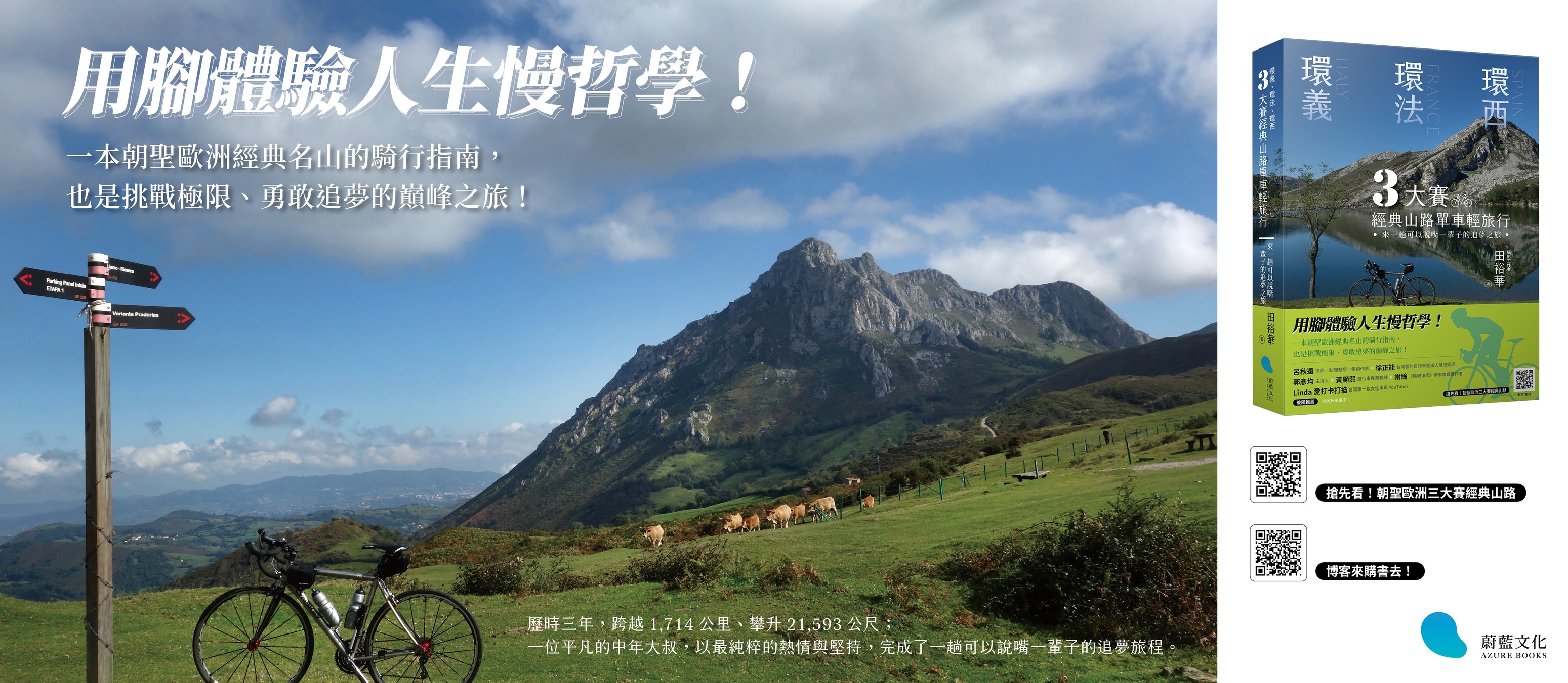 田裕華從事單車運動多年,對歐洲三大自行車賽(環義、環法、環西)的知名經典山路著迷與嚮往。2014~2018年單槍匹馬前往法、西、義三國單車旅行,並先後造訪了環法賽的「風禿山」與「阿爾杜維茲」,環西賽的「安格利路山」與「科瓦東加湖」,環義賽的「斯泰爾維奧山」、「加維亞山」、「福斯卡格諾山」及「單車教堂」。