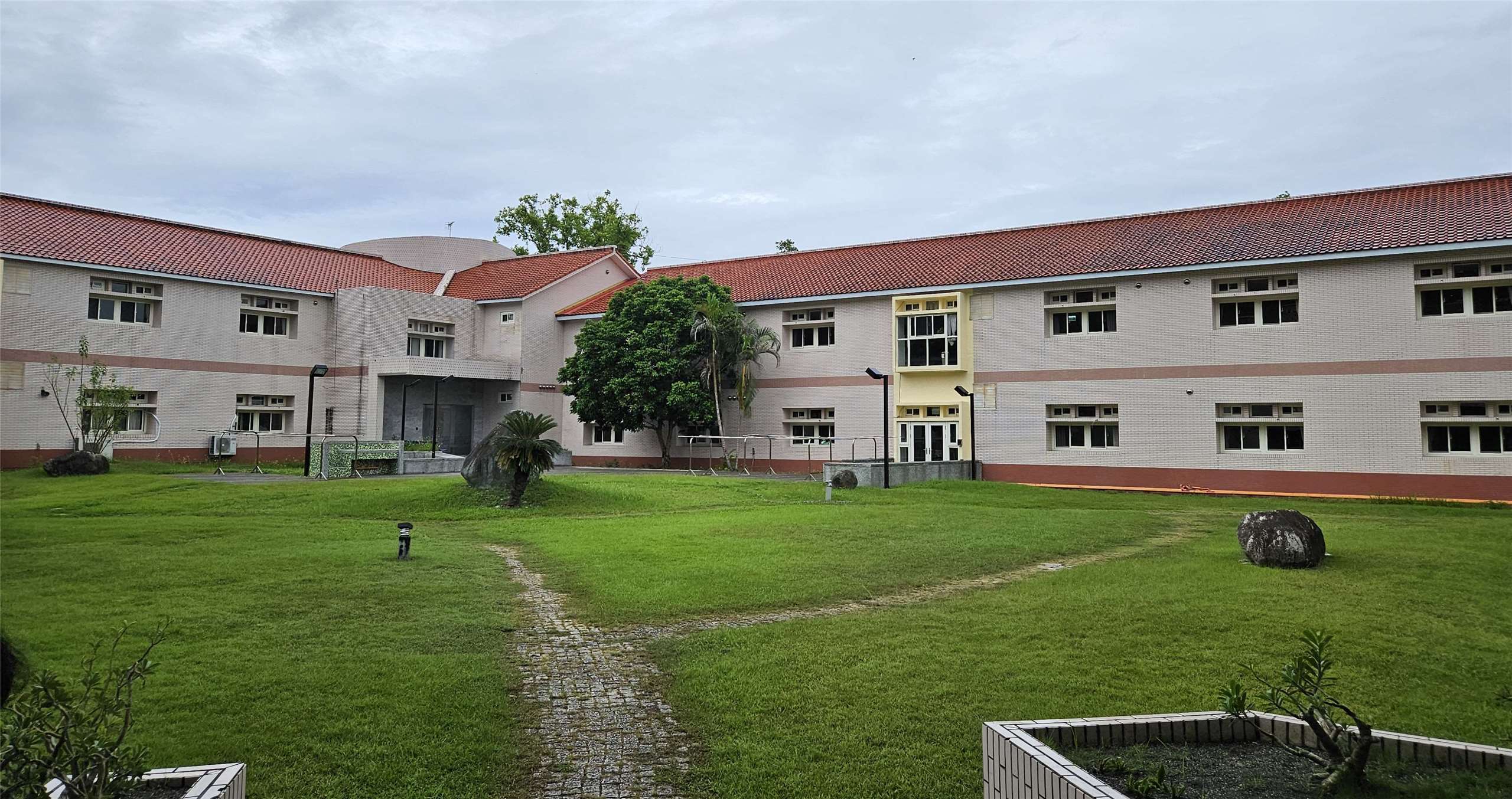 紅瓦粉牆的康復之家,學員平常可在中庭花園散步。(劉品希 攝)