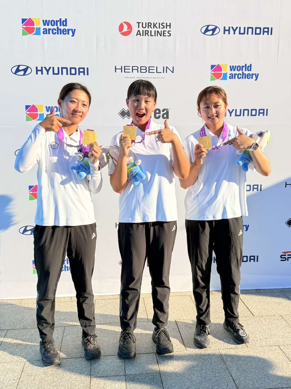 - ในการแข่งขันยิงธนูชิงแชมป์โลกที่เมืองกวางจู ประเทศเกาหลีใต้ ทีมชาติไต้หวันลงแข่งขันในรอบชิงชนะเลิศประเภททีมหญิงรีเคิร์ฟ (คันธนูโค้งกลับ) กับทีมชาติญี่ปุ่น แม้ว่าในเซตแรกทีมไต้หวันจะเริ่มต้นด้วยการยิงได้คะแนนต่ำเพียง 5 คะแนน แต่พวกเธอก็สามารถกลับมาทำผลงานได้ดีอย่างรวดเร็วด้วยการยิงธนูได้ 10 คะแนนหลายครั้ง จนสามารถคว้าเซตแรกมาได้ และจากนั้นก็รักษาฟอร์มการเล่นที่ยอดเยี่ยมไว้ได้ตลอด จนในที่สุดสามารถเอาชนะทีมญี่ปุ่นไปได้ 6-0 คว้าเหรียญทองมาครองได้สำเร็จ ในครั้งนี้ ทีมยิงธนูรีเคิร์ฟหญิงของไต้หวันประกอบด้วยนักกีฬารุ่นใหม่มากความสามารถ 3 คน ได้แก่ ชิวอี้ฉิง, สวี่ซินฉือ และ หลี่ไฉ่เซวียน โดยมีอายุเฉลี่ยไม่ถึง 20 ปี แต่ในการแข่งขันครั้งนี้ทั้งสามคนได้แสดงให้เห็นถึงความสามารถในการรับมือกับความกดดันได้อย่างยอดเยี่ยม โดยในรอบ 16 ทีมสุดท้ายที่เจอกับเยอรมนี, รอบ 8 ทีมสุดท้ายที่เจอกับสหรัฐอเมริกา และในรอบรองชนะเลิศที่เจอกับเกาหลีใต้ ทั้งหมดต้องตัดสินกันด้วยการยิงแบบ shoot-off และพวกเธอก็สามารถคว้าชัยชนะมาได้ทั้งหมดจนผ่านเข้าสู่รอบชิงชนะเลิศ ซึ่งทีมไต้หวันต้องเจอกับทีมคู่แข่งที่แข็งแกร่งอย่างญี่ปุ่น ทีมไต้หวันเป็นฝ่ายยิงก่อนในเซตแรก และในการยิงลูกที่สามก็ทำคะแนนได้เพียง 5 คะแนน แต่ทีมญี่ปุ่นก็ประสบปัญหาเช่นกัน โดยยิงได้คะแนน 7 และ 8 คะแนน ทำให้ทีมไต้หวันใช้โอกาสนี้ยิงสามลูกสุดท้ายได้ 29 คะแนน ทำให้ในเซตแรกสามารถคว้า 2 แต้มแรกได้ ด้วยคะแนน 53-51 ในเซตที่สอง ทีมญี่ปุ่นเป็นฝ่ายยิงก่อน แต่ก็ยังคงหาฟอร์มการเล่นที่ดีไม่ได้ โดยจากการยิง 6 ลูกในเซตนี้ ยิงได้ 8 คะแนนถึง 3 ลูก ในทางกลับกัน แม้ว่าทีมไต้หวันจะยิงได้ 7 คะแนนอีกครั้ง แต่พวกเธอก็สามารถยิงได้ 10 คะแนนถึง 2 ลูก และลูกสุดท้ายได้ 8 คะแนน ทำให้สามารถแต้มนำเป็น 4-0 ด้วยคะแนน 53-52 ในเซตที่สาม ทั้งสองทีมทำคะแนนเสมอกันที่ 28-28 จากการยิง 6 ลูกแรก แต่ในการยิงสามลูกสุดท้าย ทีมญี่ปุ่นกลับยิงได้ 8 คะแนนถึง 2 ลูก และในการยิงลูกสุดท้ายก็เกิดสถานการณ์ที่ไม่คาดคิดขึ้น นั่นคือการยิงเกินเวลาที่กำหนด ทำให้คะแนนไม่ถูกนับ ส่งผลให้ทีมไต้หวันสามารถควบคุมสถานการณ์และคว้าชัยชนะไปได้ด้วยคะแนน 54-44 และคว้าเหรียญทองมาครองได้สำเร็จ นับเป็นครั้งแรกที่ทีมยิงธนูรีเคิร์ฟหญิงสามารถคว้าเหรียญทองได้ นับตั้งแต่ปี 2019 โดยในครั้งนั้นประกอบด้วย เหลยเชียนอิ๋ง, ถานหย่าถิง และ เผิงเจียเม่า