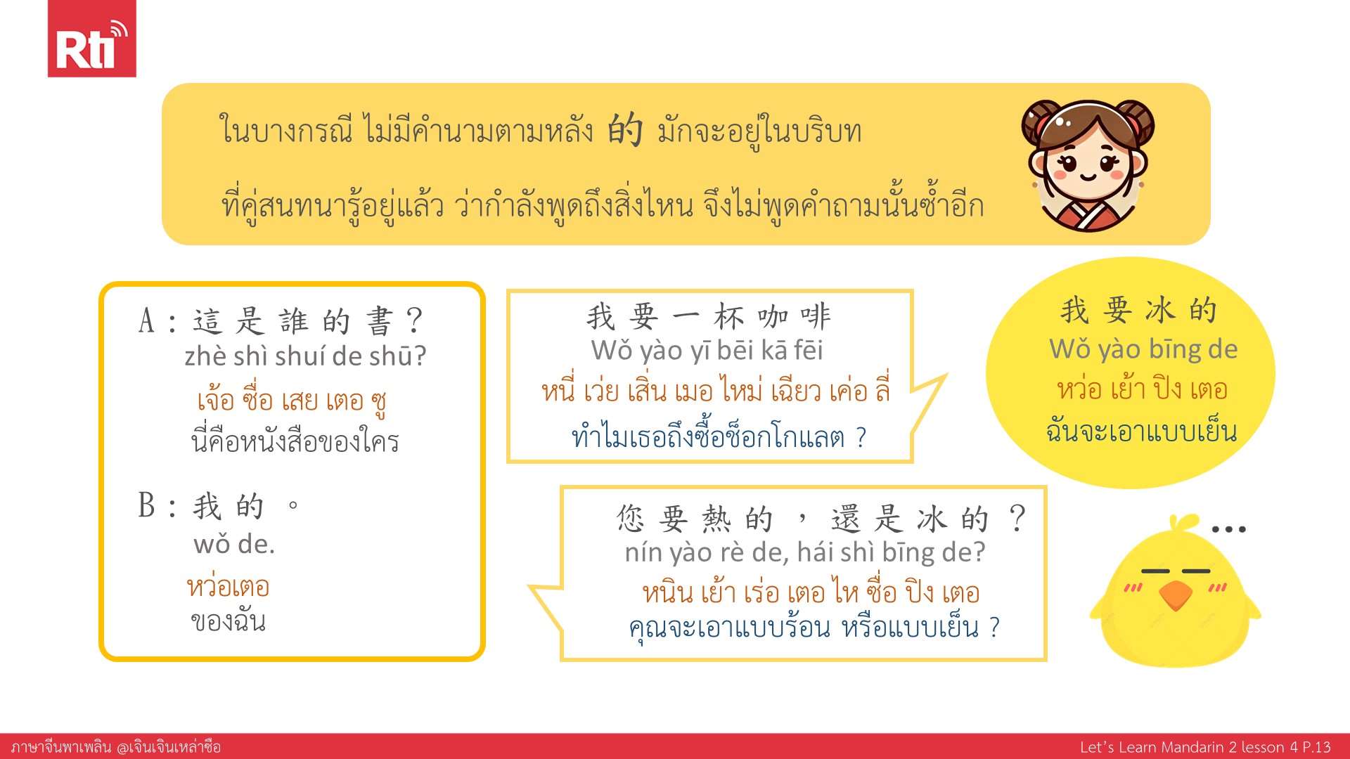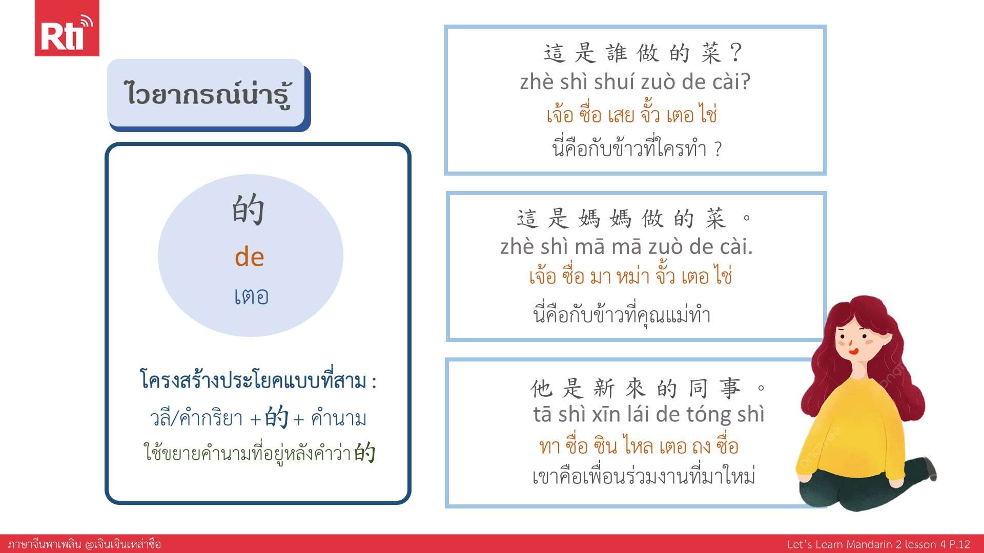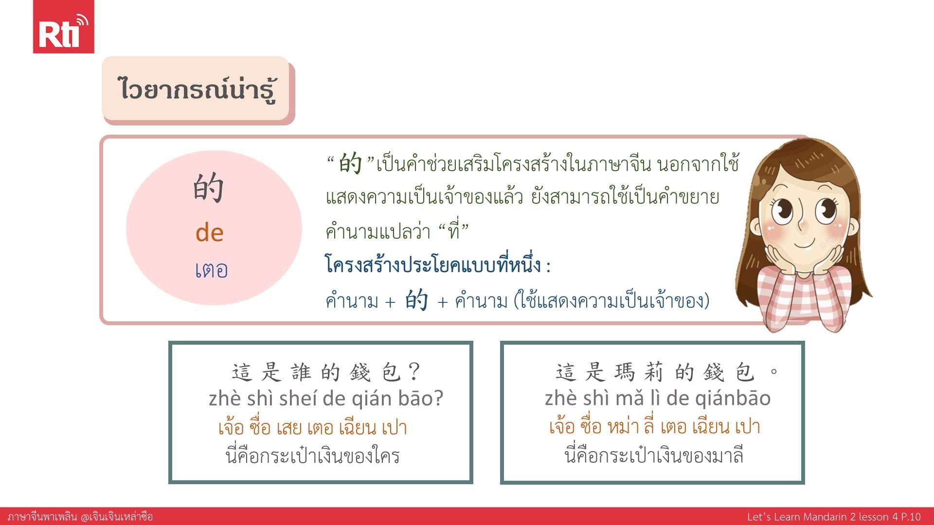🔺 ปล. ส่งอีเมลมาที่ thai@rti.org.tw เพื่อขอรับเอกสารประกอบการเรียนภาษาจีนพาเพลิน คลิกฟังรายการเพิ่มเติมที่ https://youtu.be/-dckswJ3xhI