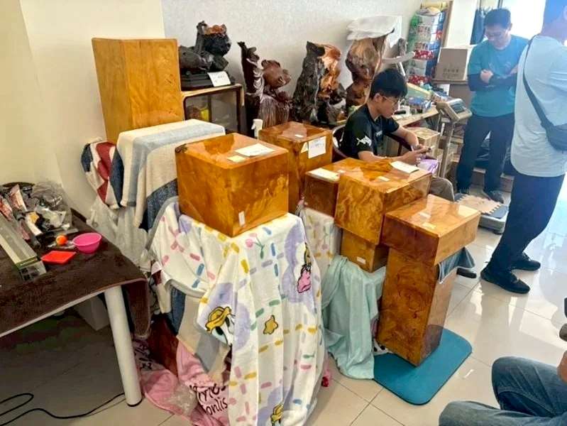 ท่อนไม้หอมฮิโนกิที่ตำรวจยึดได้ (ภาพจากสำนักงานอัยการหนานโถว)