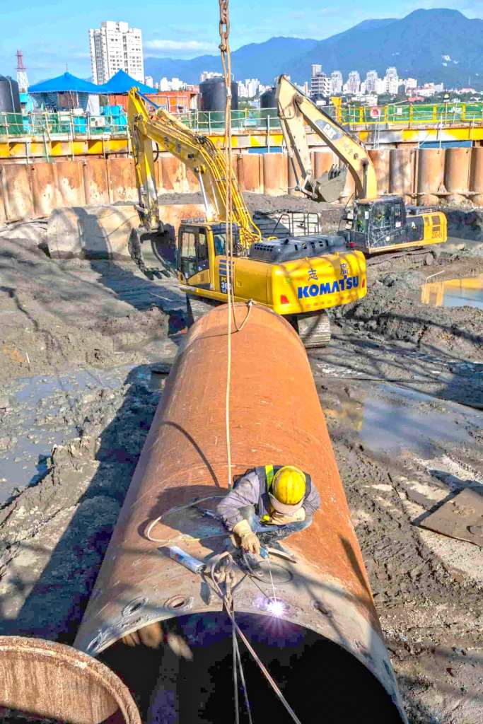 แรงงานไทยในไซต์งานก่อสร้างรถไฟฟ้าสายสีเขียว เถาหยวน (ภาพจากกองบริหารรถไฟฟ้า นครเถาหยวน)