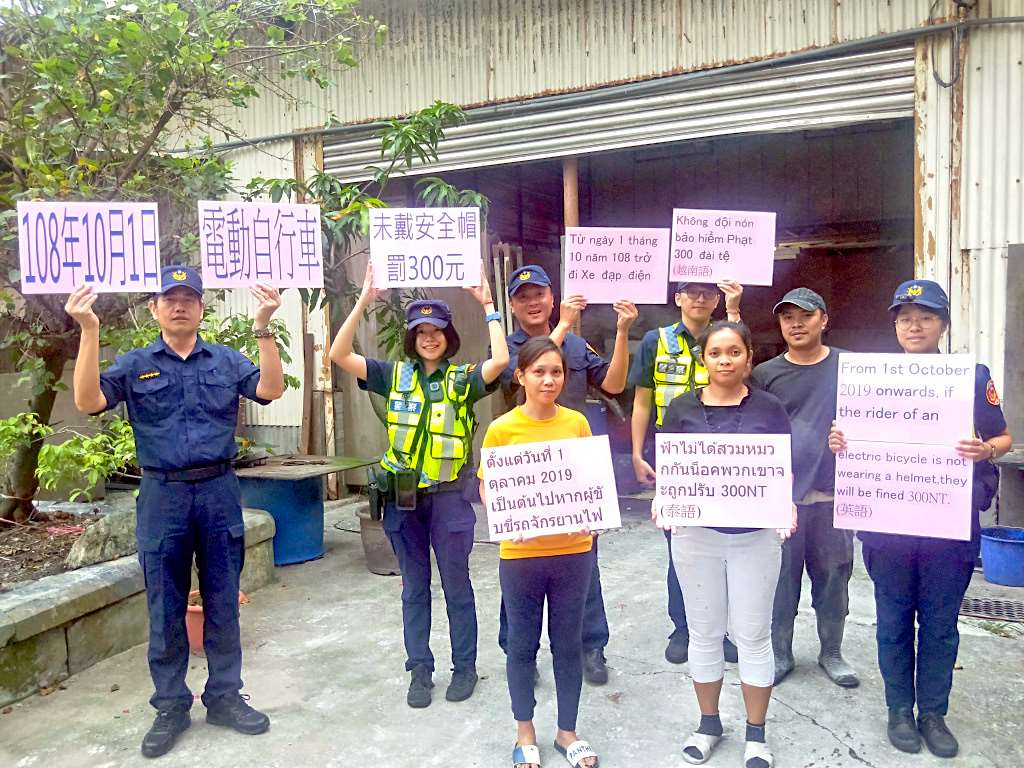ตำรวจฮัวเหลียนประชาสัมพันธ์ตามโรงงานต่าง ๆ เมาไม่ขับ เคารพกฎจราจรและสวมหมวกกันน็อก (ภาพจากสถานีตำรวจฮัวเหลียน)