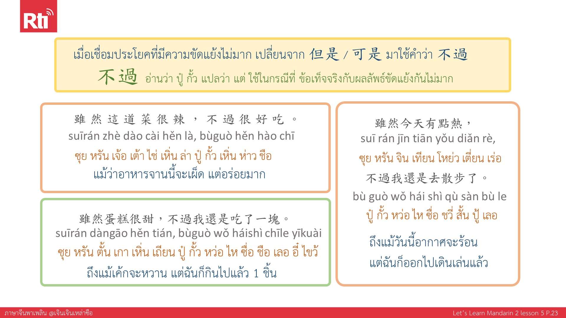 🔺 ปล. ส่งอีเมลมาที่ thai@rti.org.tw เพื่อขอรับเอกสารประกอบการเรียนภาษาจีนพาเพลิน คลิกฟังรายการเพิ่มเติมที่ https://youtu.be/yECvEncsECg