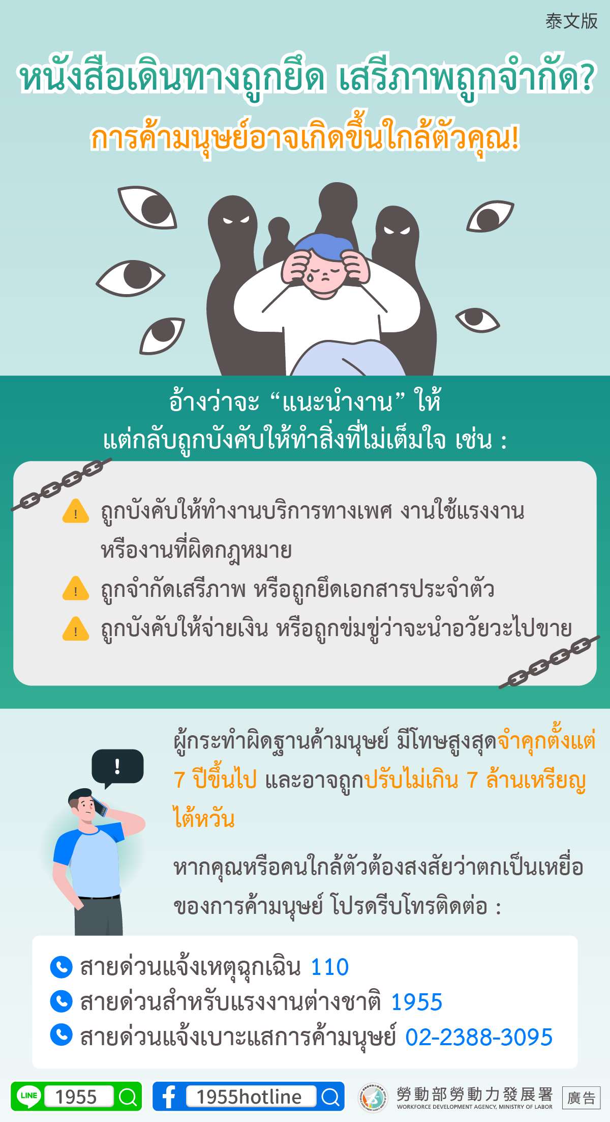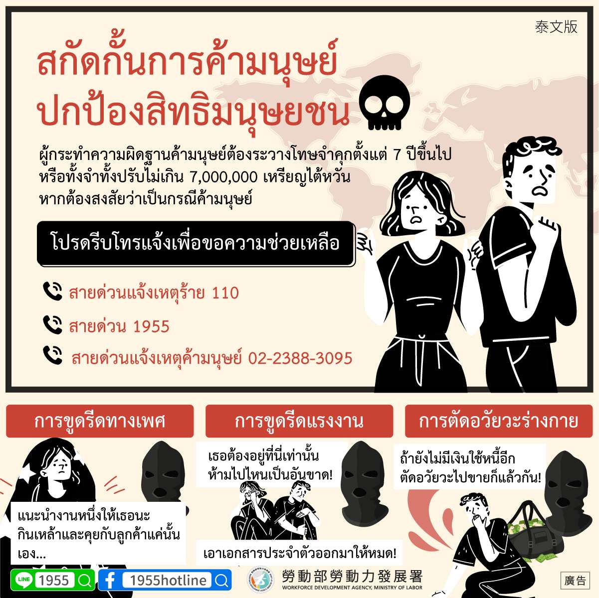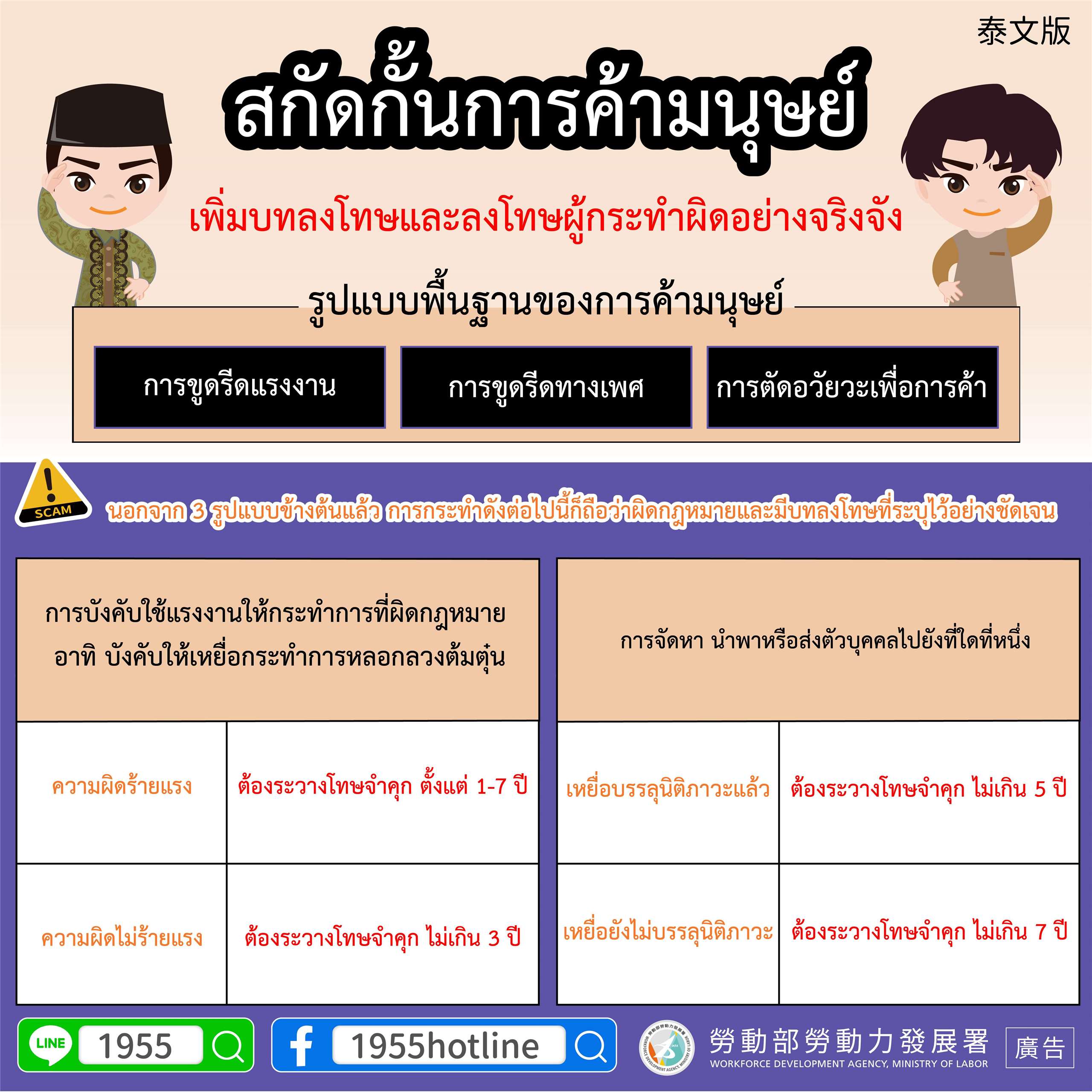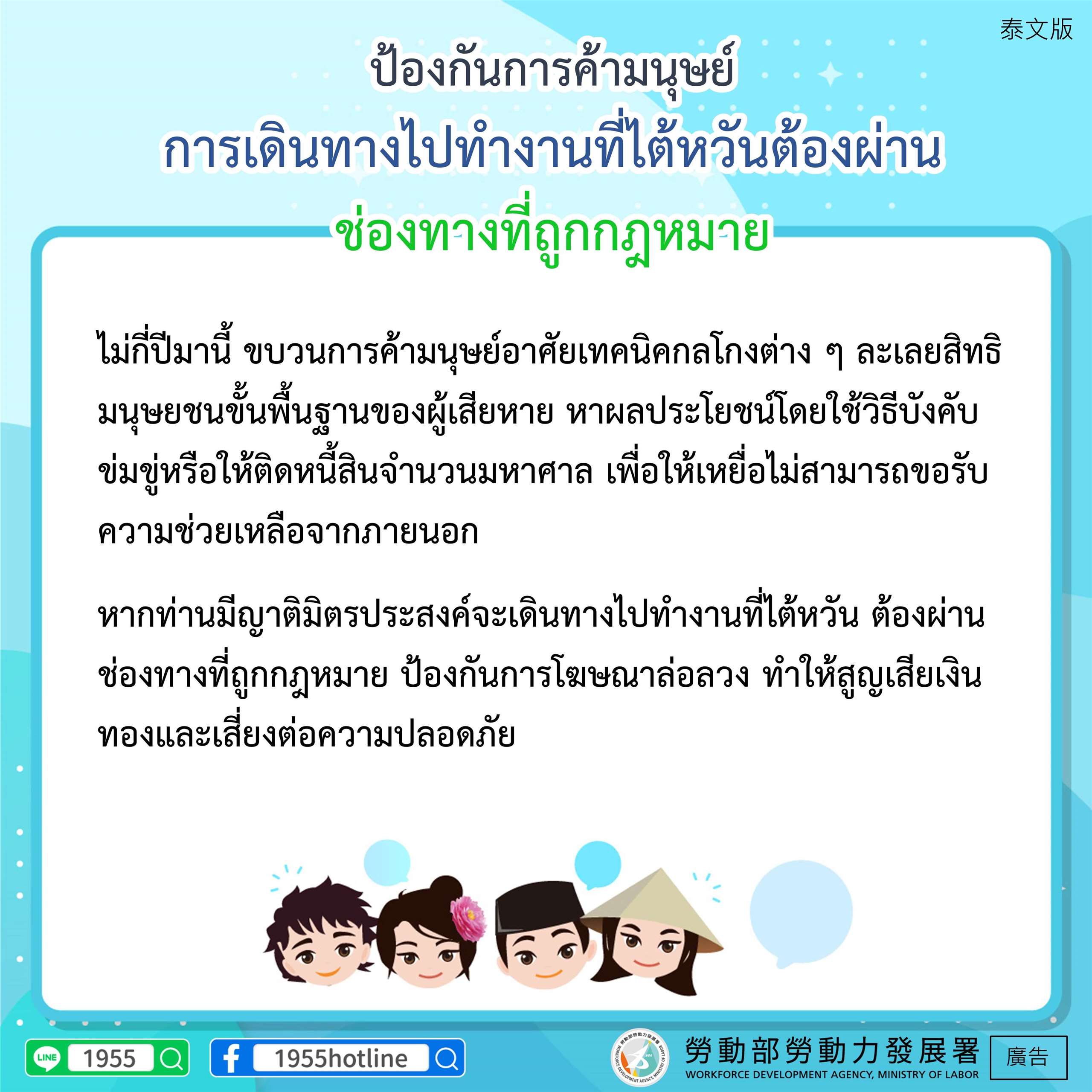 สื่อประชาสัมพันธ์การสกัดกั้นค้ามนุษย์จากกรมพัฒนากำลังแรงงาน กระทรวงแรงงาน