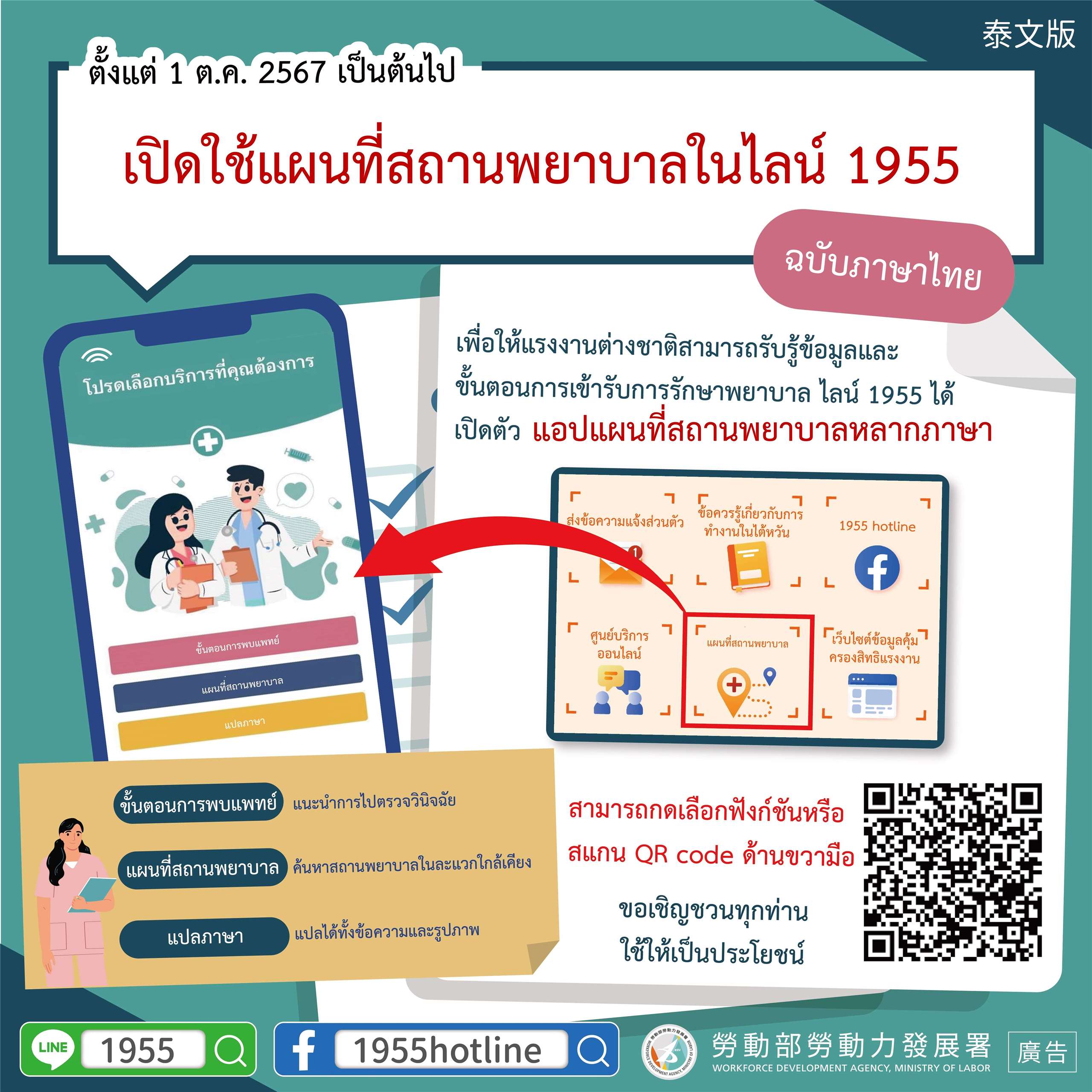 ระบบแผนที่สถานพยาบาลที่กรมพัฒนากำลังแรงงานจัดทำขึ้น เพื่ออำนวยความสะดวกแรงงานต่างชาติ เปิดค้นหาดูได้จากกลุ่มไลน์ 1955