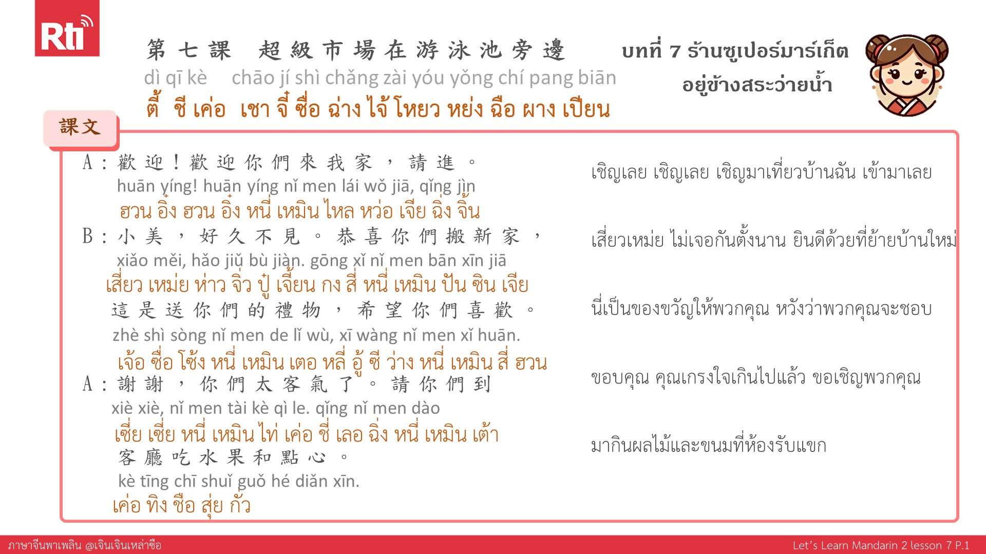 🔺 ปล. ส่งอีเมลมาที่ thai@rti.org.tw เพื่อขอรับเอกสารประกอบการเรียนภาษาจีนพาเพลิน คลิกฟังรายการเพิ่มเติมที่ https://youtu.be/Ft7aQGh3Srs