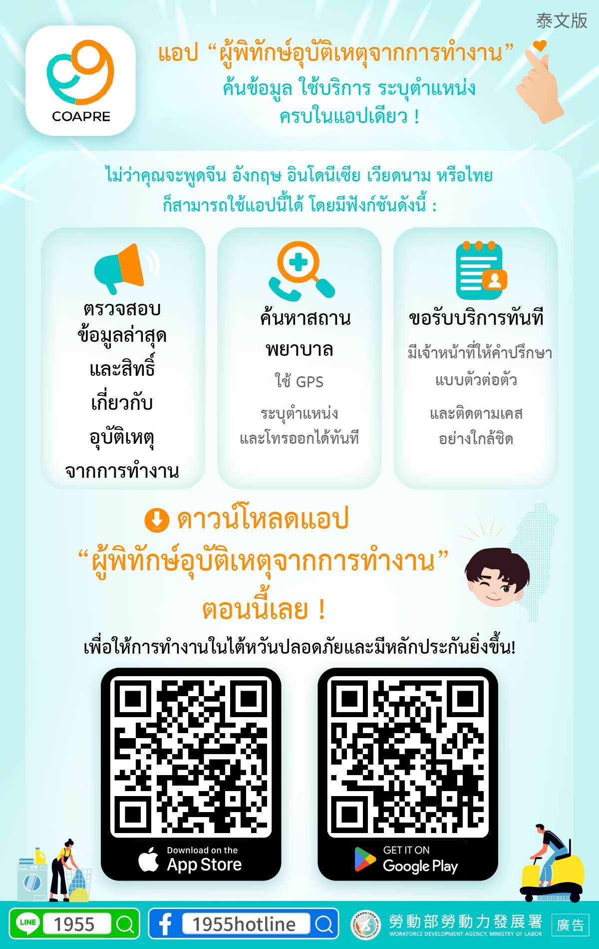 1. ไต้หวันเตรียมจัดหาทนายความช่วยลูกจ้างไกล่เกลี่ยค่าชดใช้กรณีอุบัติเหตุจากการทำงาน รวมแรงงานต่างชาติด้วย เริ่มดำเนินการปี 2569