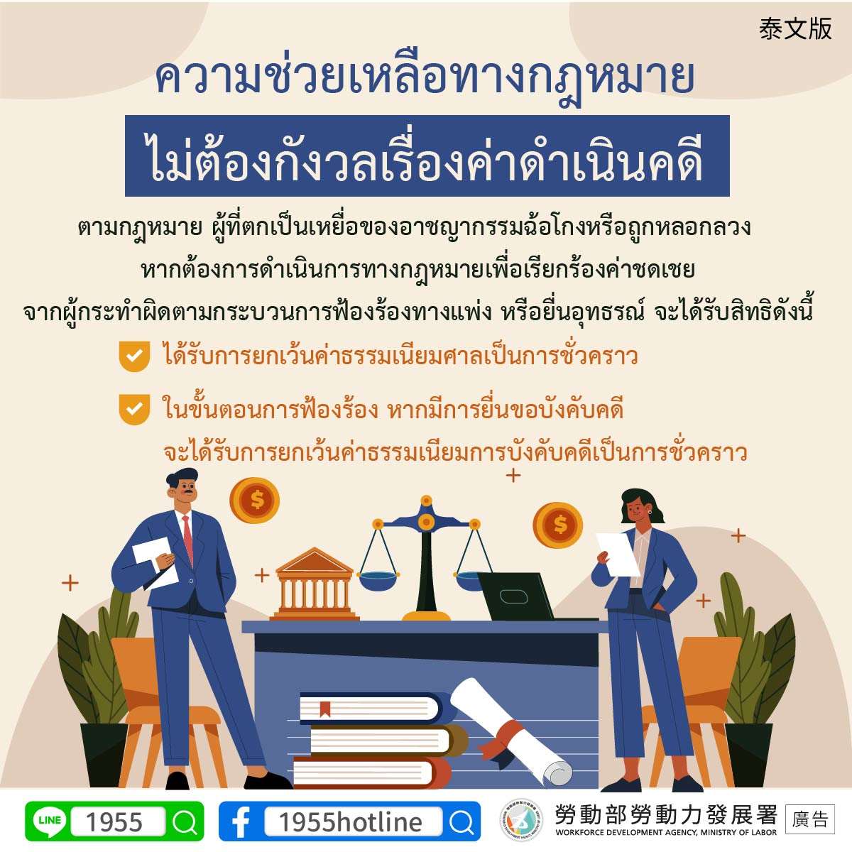กระทรวงแรงงานเตรียมทนายความและล่ามดูแลครบทุกขั้นตอน