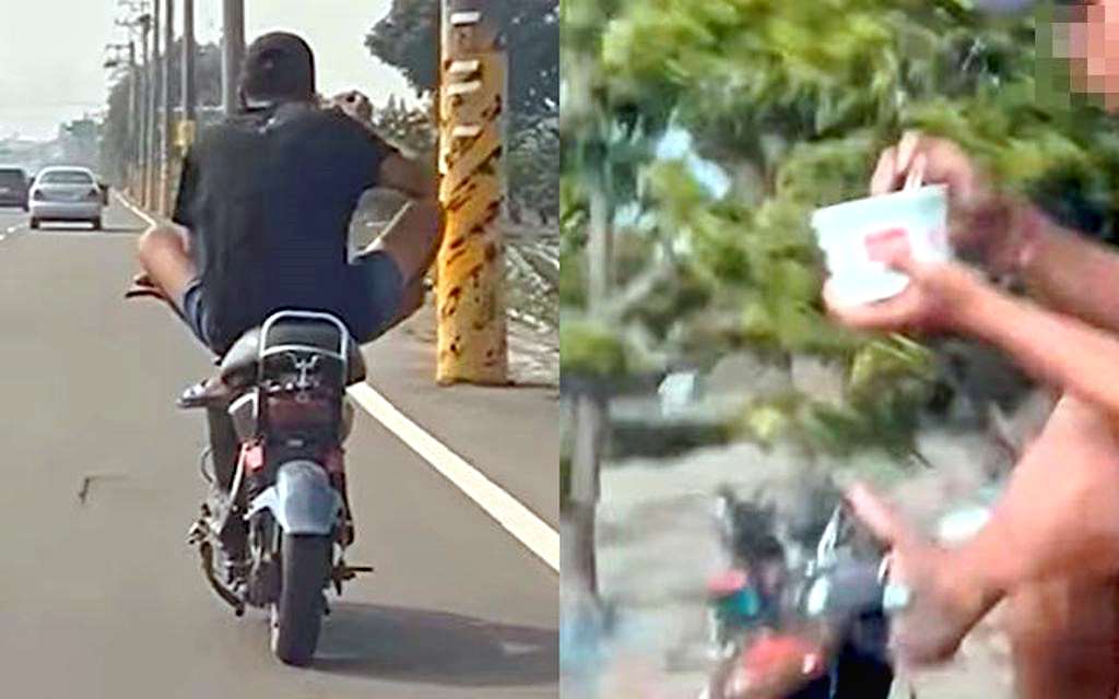 ต่อพฤติกรรมเสี่ยงดังกล่าว ตำรวจดำเนินการตรวจสอบและเปิดเผยว่า อาจโดนหลายข้อหา ขณะนี้ยังไม่ได้รับแจ้งความอย่างเป็นทางการ แต่ได้ส่งเจ้าหน้าที่ลงพื้นที่ตรวจสอบแล้ว พร้อมตรวจภาพจากกล้องวงจรปิดเพื่อยืนยันสถานที่เกิดเหตุและติดตามตัวผู้ขับขี่มาตรวจสอบ ตำรวจระบุว่า หากพิสูจน์ได้ว่าชายในคลิปเป็นผู้กระทำจริง จะถูกดำเนินการตามกฎหมายในหลายฐานความผิด ได้แก่ ขับขี่โดยประมาทหรือเป็นอันตรายต่อผู้อื่น มีโทษปรับระหว่าง 300–1,200 เหรียญไต้หวัน ไม่ติดแผ่นป้ายทะเบียนปรับ 1,200–3,600 เหรียญไต้หวัน ไม่สวมหมวกกันน็อกปรับเพิ่มอีก 300 เหรียญไต้หวัน เจ้าหน้าที่ระบุว่า จะเร่งตรวจสอบเพื่อป้องกันไม่ให้เกิดพฤติกรรมเสี่ยงเช่นนี้ซ้ำอีกบนท้องถนน