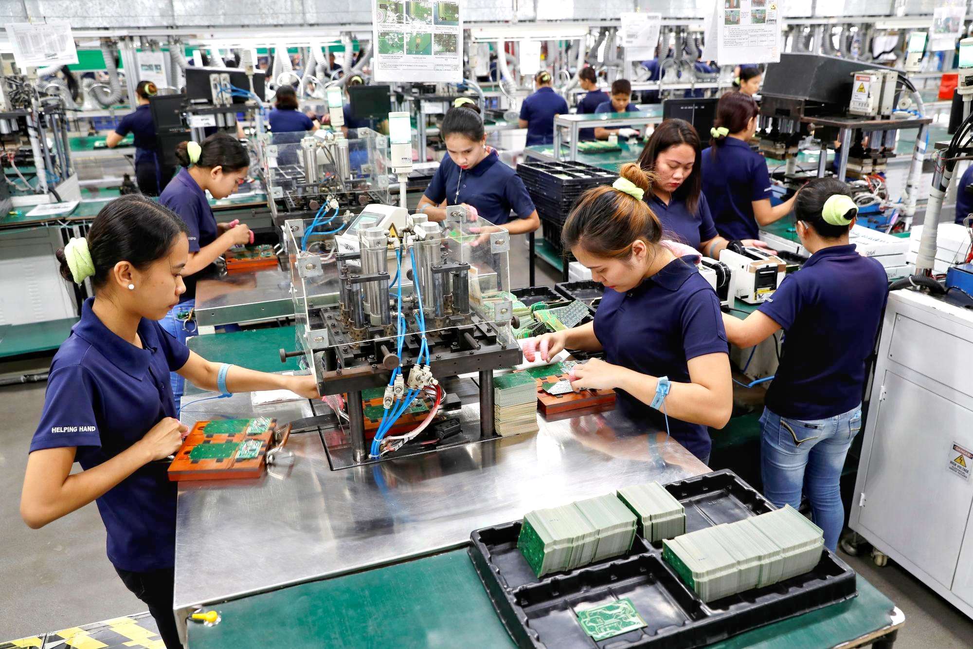 แรงงานฟิลิปปินส์ในโรงงานอิเล็กทรอนิกส์ (ภาพจาก twreporter.org-Reuter/Erik de Castro)