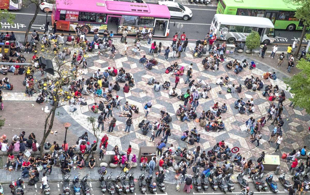 แรงงานต่างชาติที่ศูนย์การค้าอาเซียนสแควร์ นครไทจง (ภาพจาก cw.com.tw)