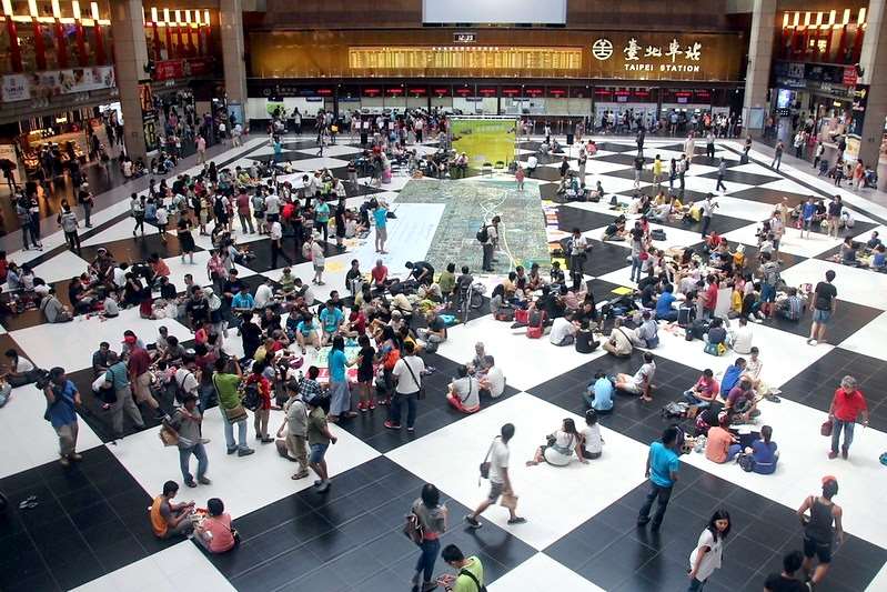 แรงงานต่างชาติจำนวนมากนิยมใช้ห้องโถงสถานีรถไฟไทเปเป็นสถานที่พักผ่อนและนัดพบญาติมิตร