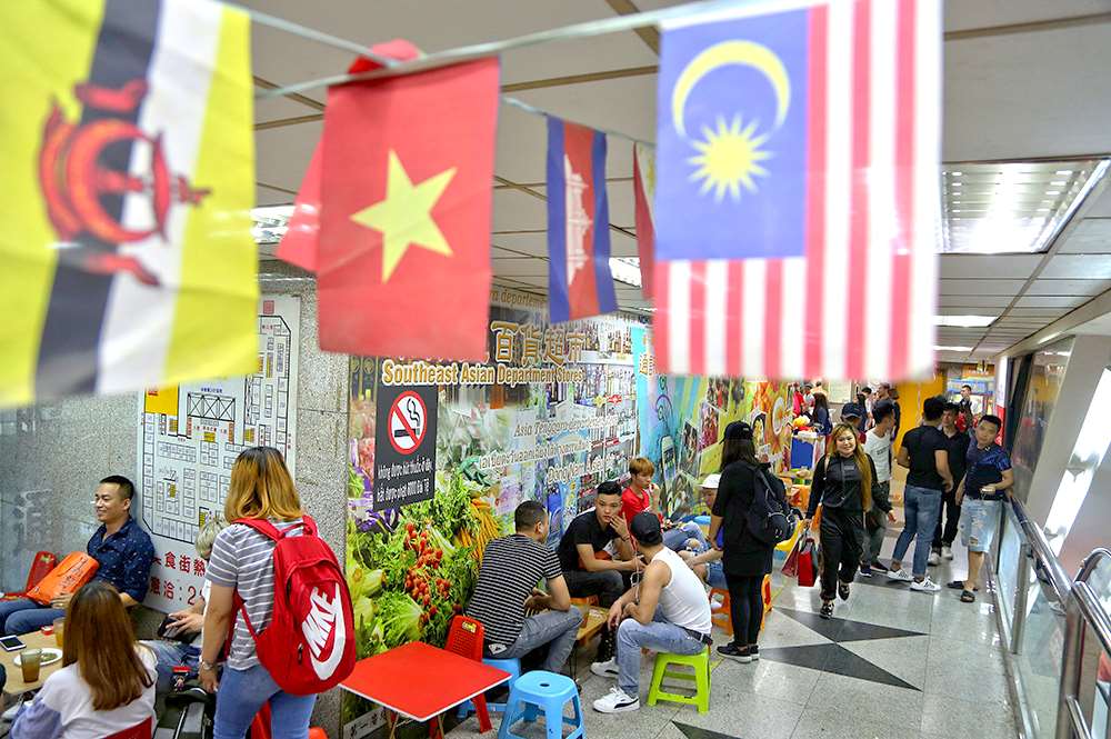 ในวันหยุดจะมีแรงงานต่างชาติจำนวนมากไปเดินชอปปิงและรับประทานอาหารในศูนย์การค้าอาเซียนสแควร์ นครไทจง (ภาพจาก gvm.com.tw)