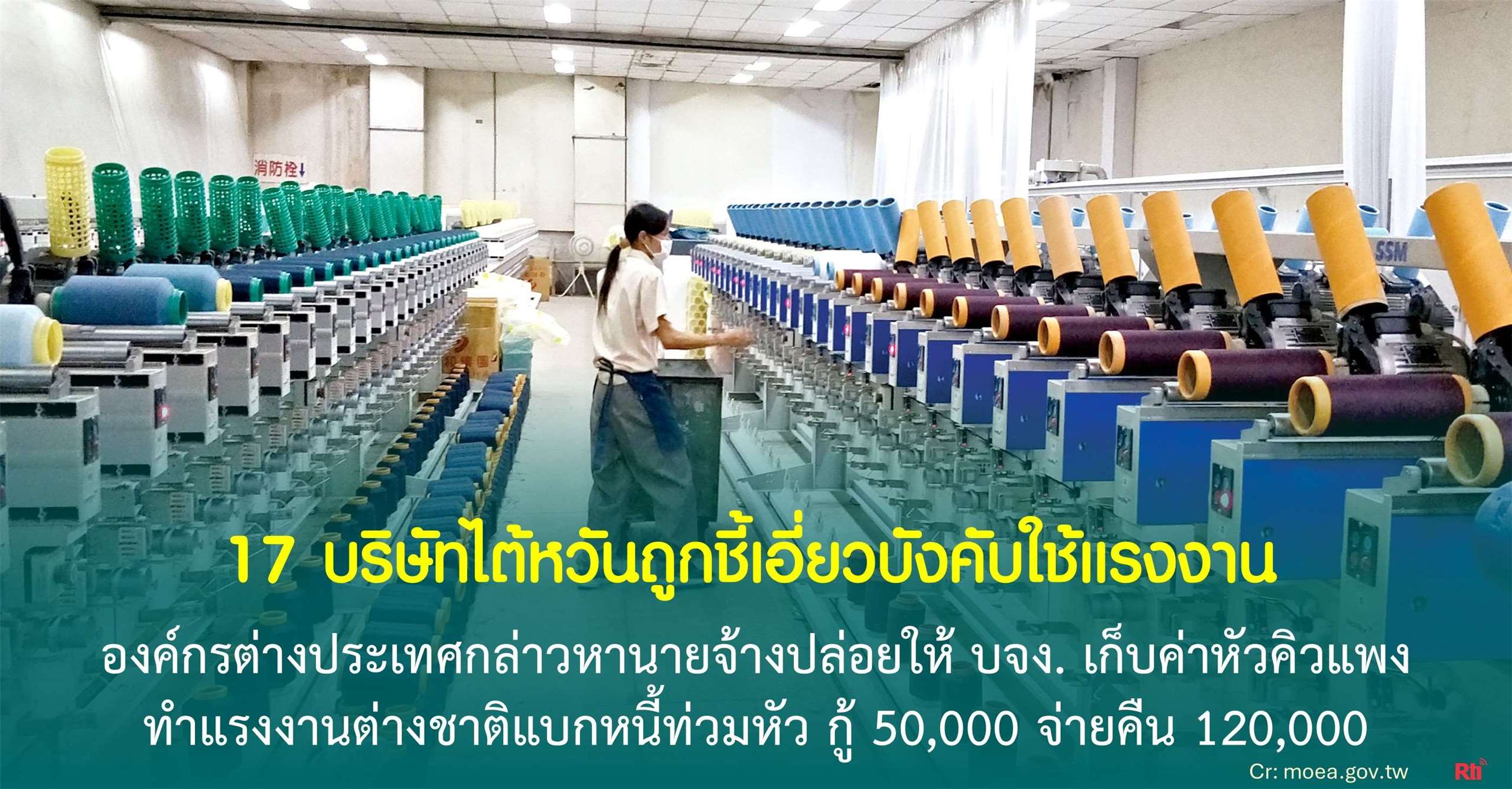 3. 17 บริษัทไต้หวันถูกชี้เอี่ยวบังคับใช้แรงงาน ปล่อยแรงงานต่างชาติแบกหนี้ท่วมหัว กู้ 5 หมื่นต้องจ่ายคืน 1.2 แสน