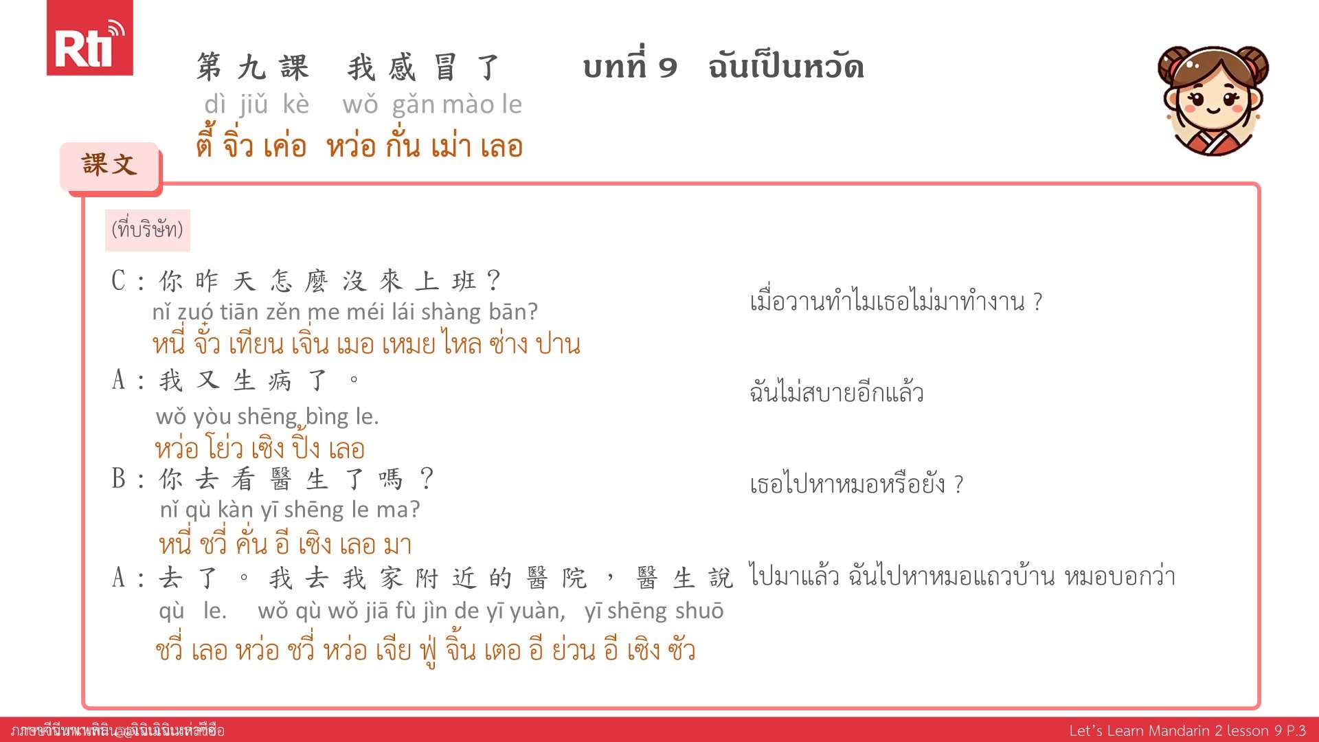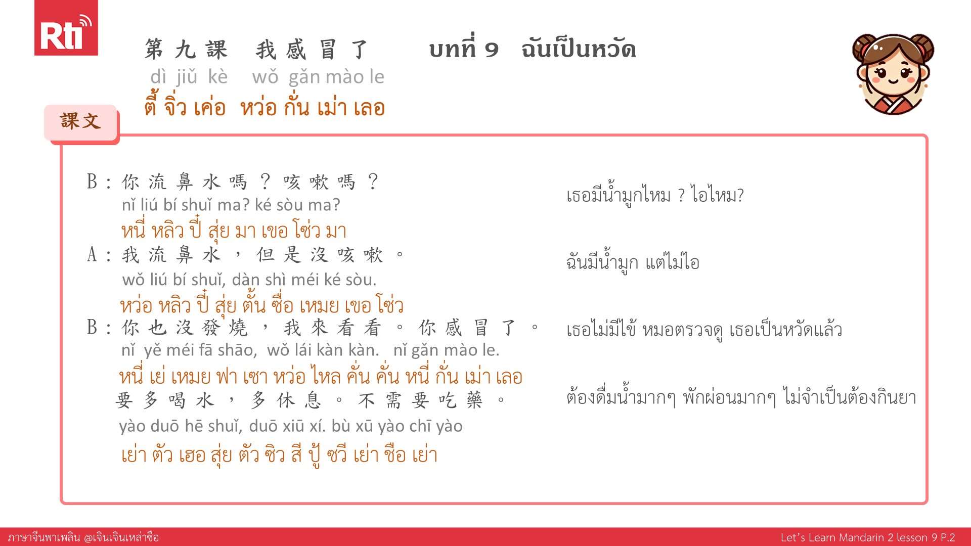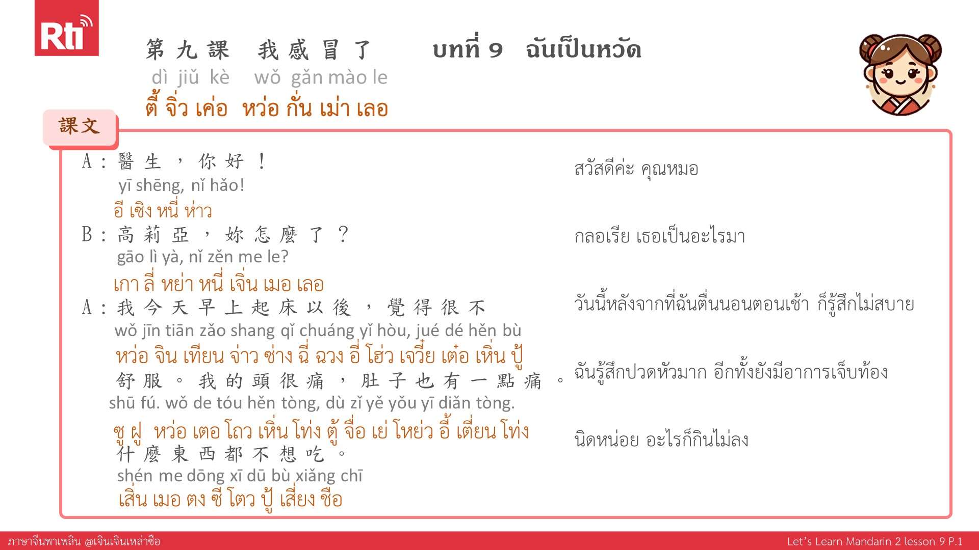 🔺 ปล. ส่งอีเมลมาที่ thai@rti.org.tw เพื่อขอรับเอกสารประกอบการเรียนภาษาจีนพาเพลิน คลิกฟังรายการเพิ่มเติมที่