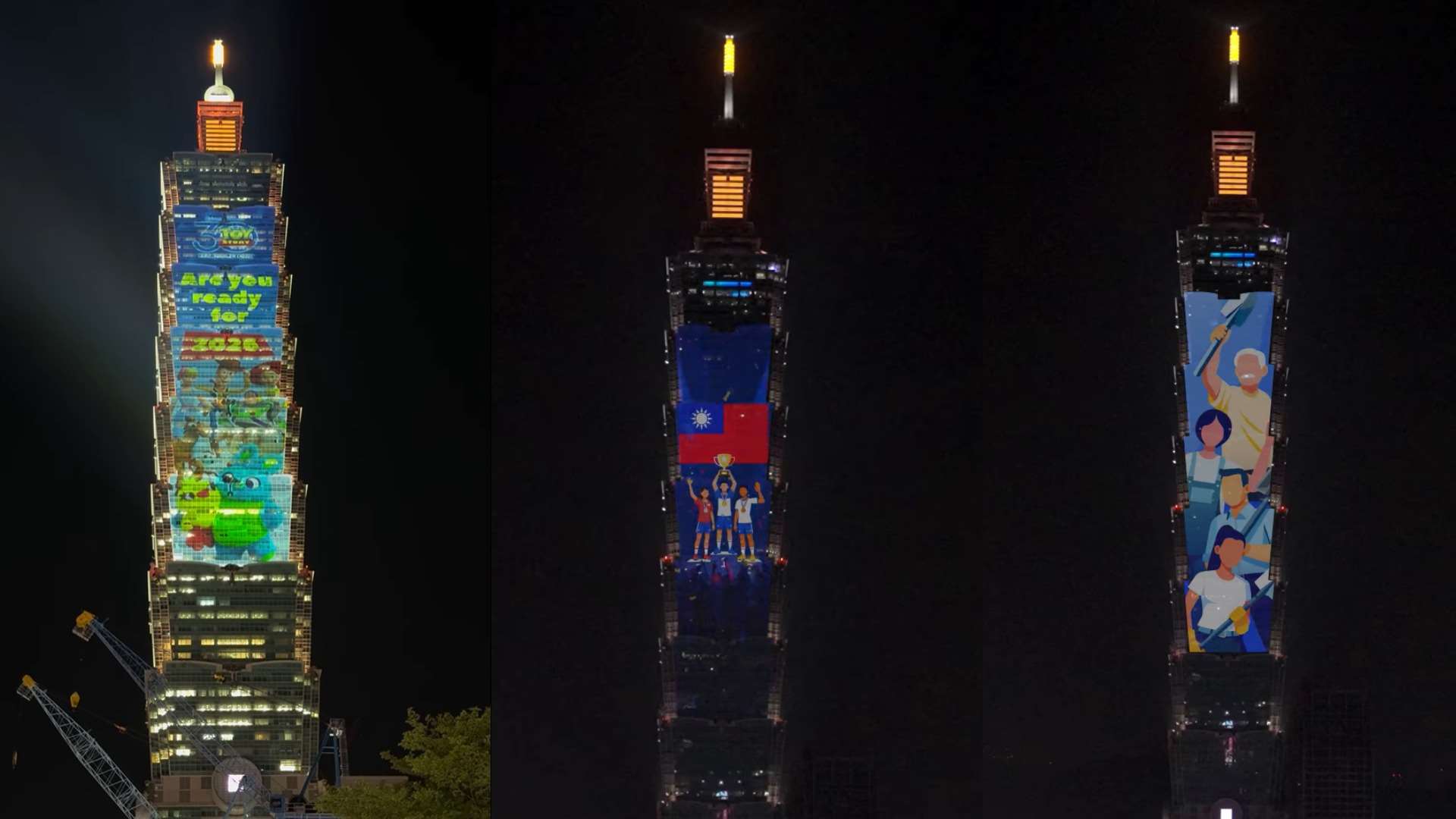 ในคืนส่งท้ายปีเก่าอันยิ่งใหญ่ที่สุด วันที่ 31 ธันวาคม ตัวละครทุกตัวจาก “ทอย สตอรี่” จะปรากฏพร้อมกันบนอาคารไทเป 101 พร้อมข้อความ “Are you ready for 2026” และ “Farewell to 2025” จุดประกายบรรยากาศเคานต์ดาวน์ให้ถึงขีดสุด ส่วนการแสดงแสงสีในธีม “ฮีโร่นิรนามแห่งไต้หวัน จะถ่ายทอดภาพของเหล่าฮีโร่ที่มักถูกมองข้าม ไม่ว่าจะเป็นพนักงานออฟฟิศที่ยังทำงานยามดึก คนทำความสะอาดที่เริ่มต้นวันตั้งแต่ฟ้ายังไม่สว่าง ตลอดจนเจ้าหน้าที่ตำรวจ นักผจญเพลิง และบุคลากรทางการแพทย์ที่คอยปกป้องความปลอดภัยของสังคม